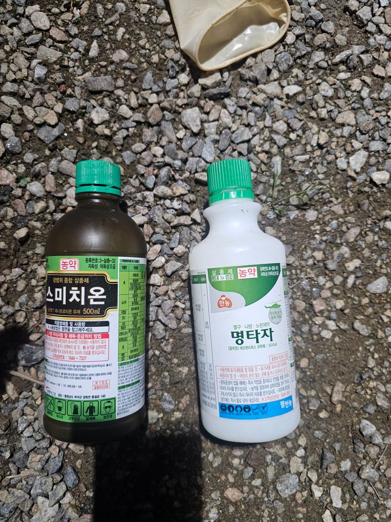배추 무우에 님오일(물20L 당 25g) 달팽이약(친환경) 아미노산 섞어서 60L 살포함