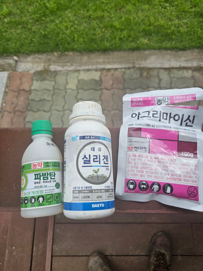 배추에 님오일 100ml 물40L과 달팽이 제거제 규석제와 섞어서 살포