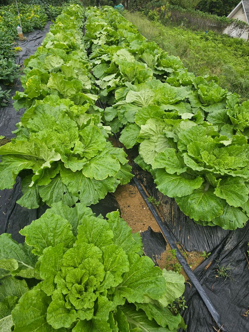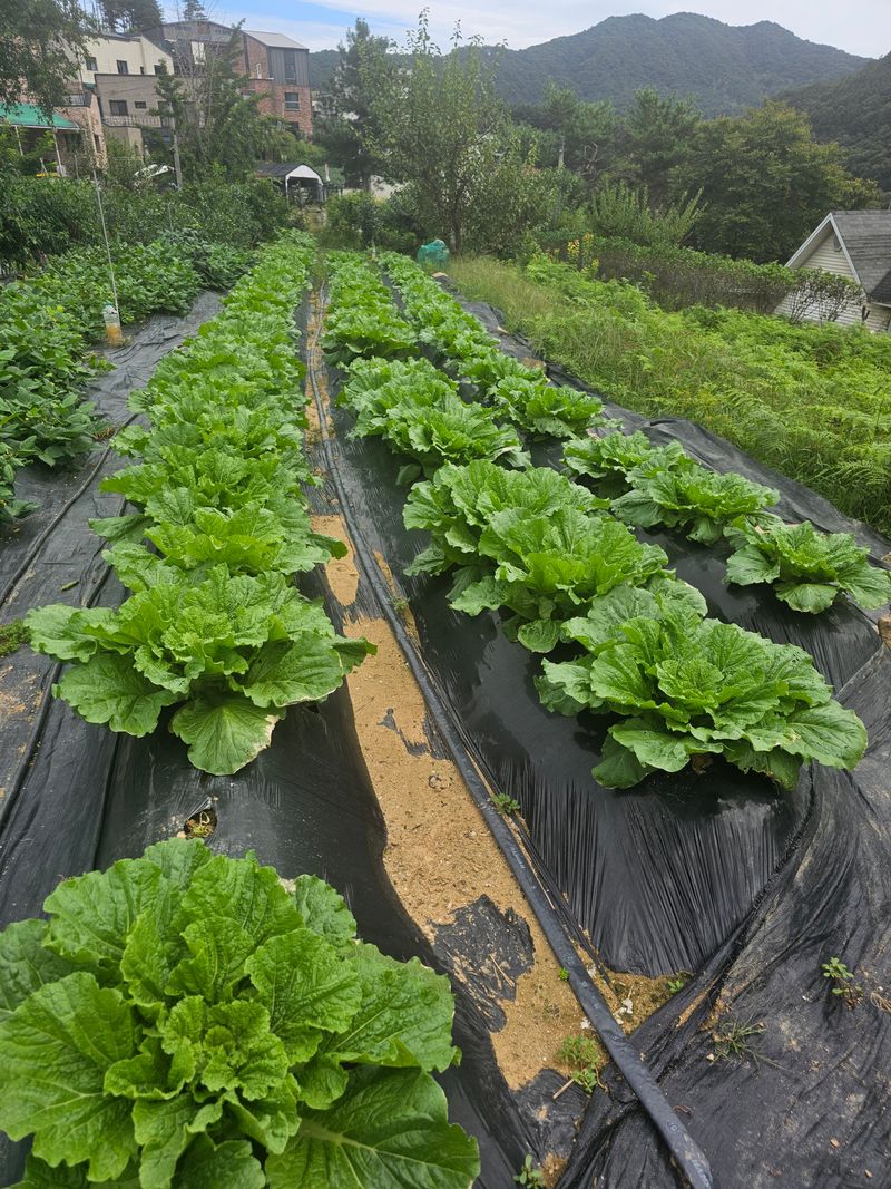배추 , 무우 칼슘제 물100L에 칼슘제, EM4L, 광합성균, 고초균, 유산균, 효묘균, 클로레라균 각 500ml 섞어서 비가 와서 무름병 예방