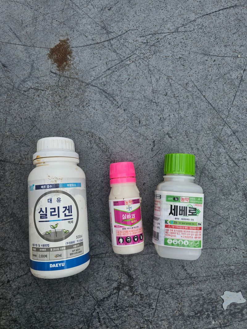 배추 무우에 규산황 유기농약 미리근영양제 20ml, 40, 20g ,넣고 살포 총 80L