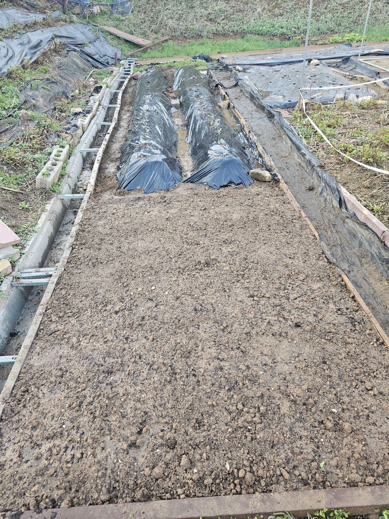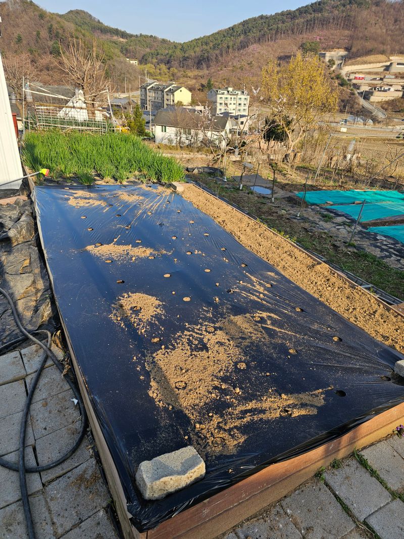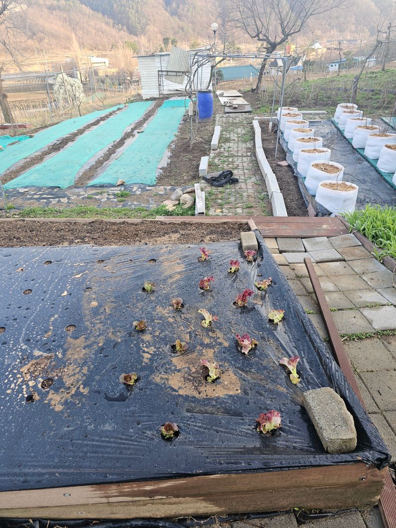 틀밭에 상추밭 만들고 쑷갓 씨 한줄 뿌림.