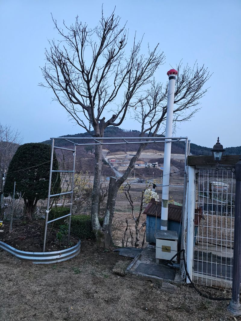 개집 위에 장미 덩클 만듬. 오이 사각틀 만듬.