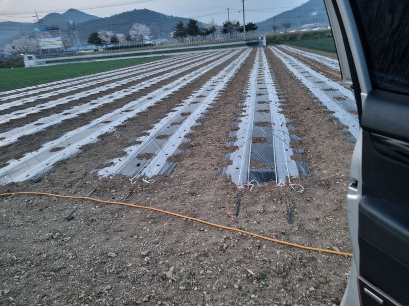 오늘은고추비료추가하고 골아랑 에 재초매트 깔아씀