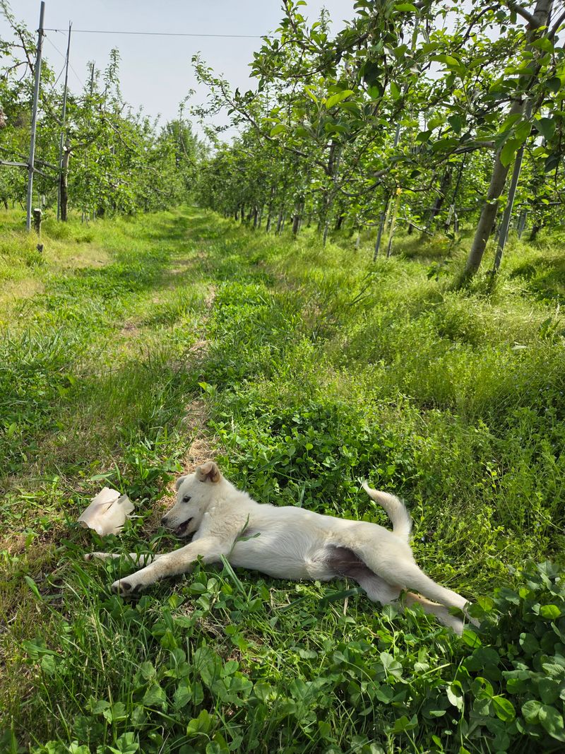 혼자 사과적과 작업하는데 뎅댕이가 하루종일 따라다니 심심치는는 않은데 불쌍해요 저녘에는 혼자있으니 낮에는 따라다니며 자기도 하고 패트병하나주면 한시간은 ~~^^