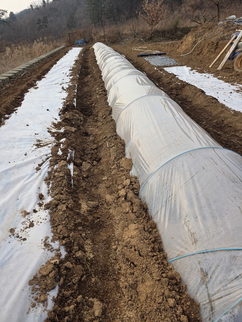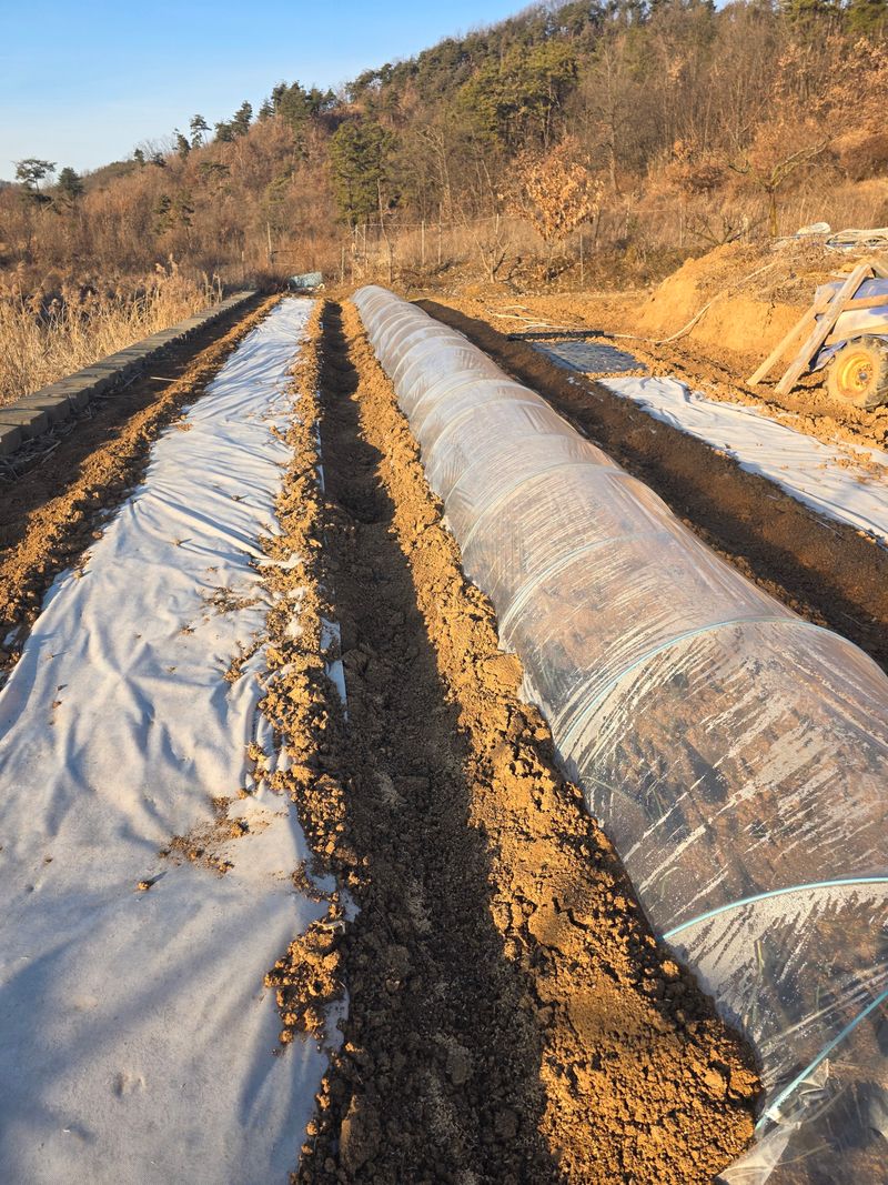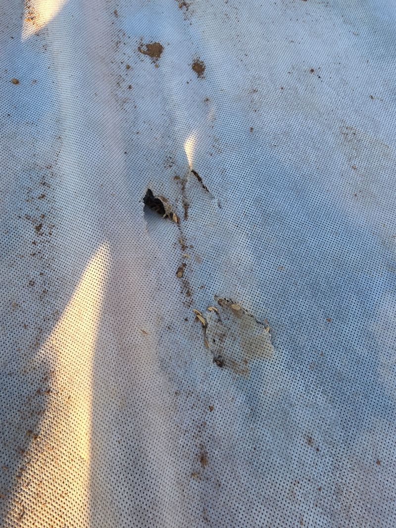 현장 상태확인중 고라니 발자욱에 부직포 구멍.