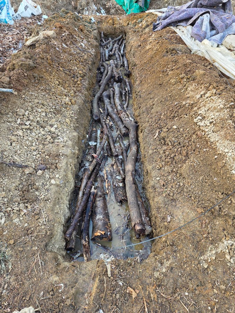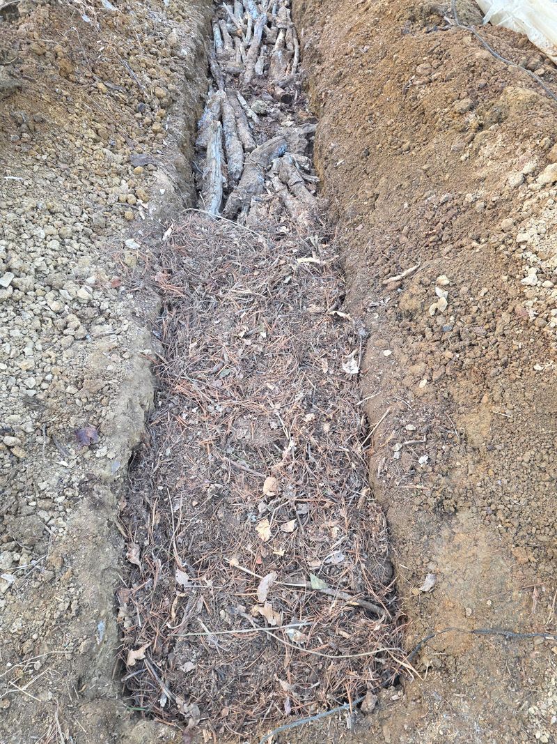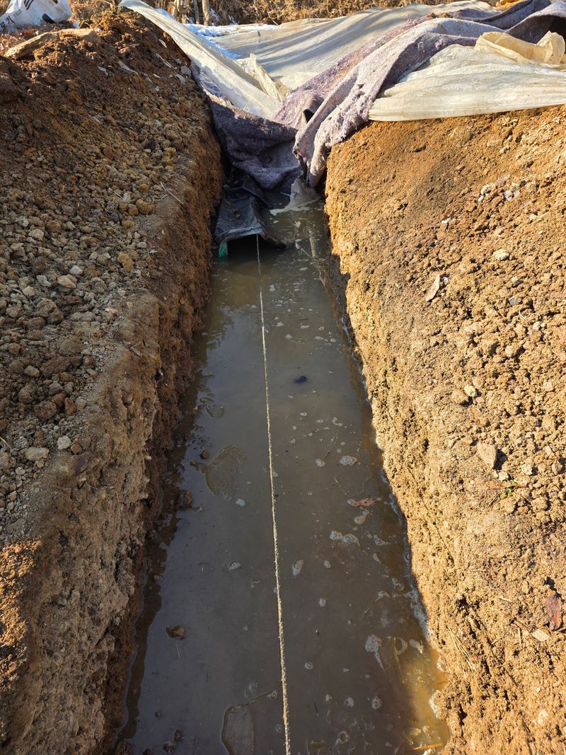 틀밭 만들기 논을 밭으로 사용하려니 습해서 3m간격으로 넓이600×길이6,000×깊이60=7EA 지하 틀밭을 만들고 있습니다.