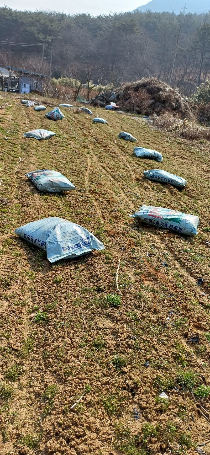 농사시작입니다. 퇴비 살포및 밑거름 살포작업했네요 날씨는 화창하네요.