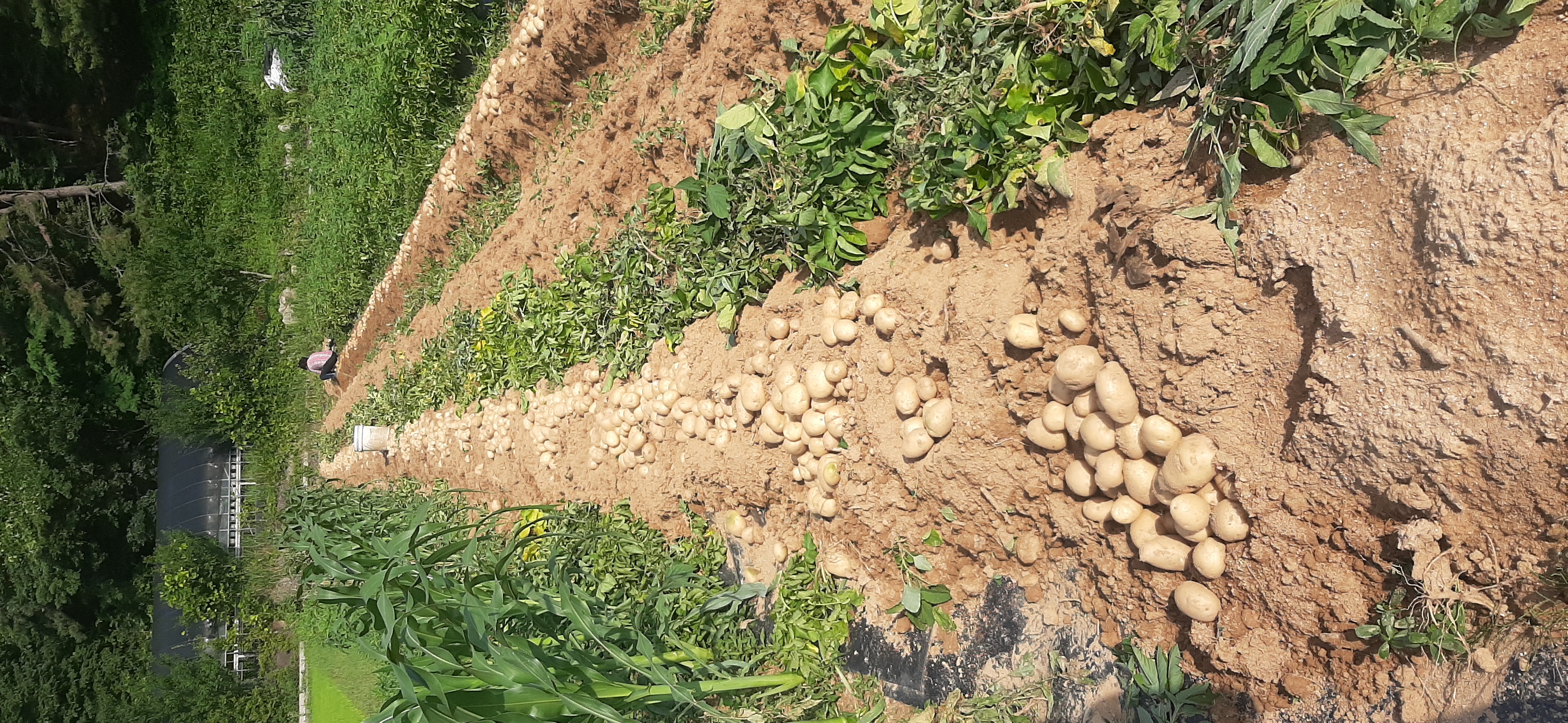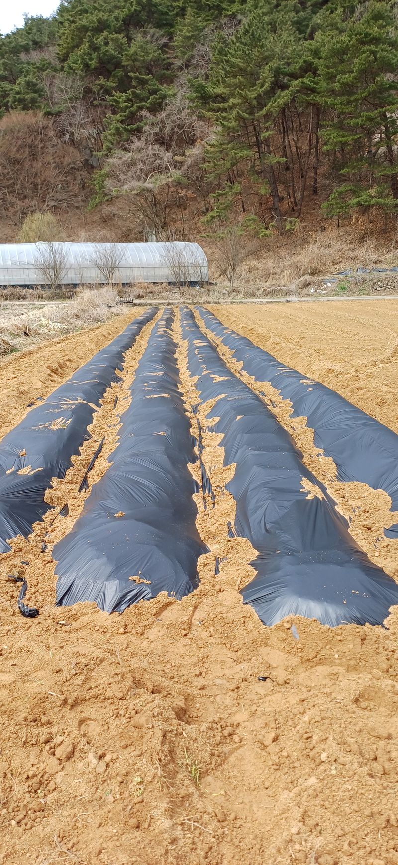 마늘밭 캴슘석회 살포후 두둑만듬 무우 솎음작업.