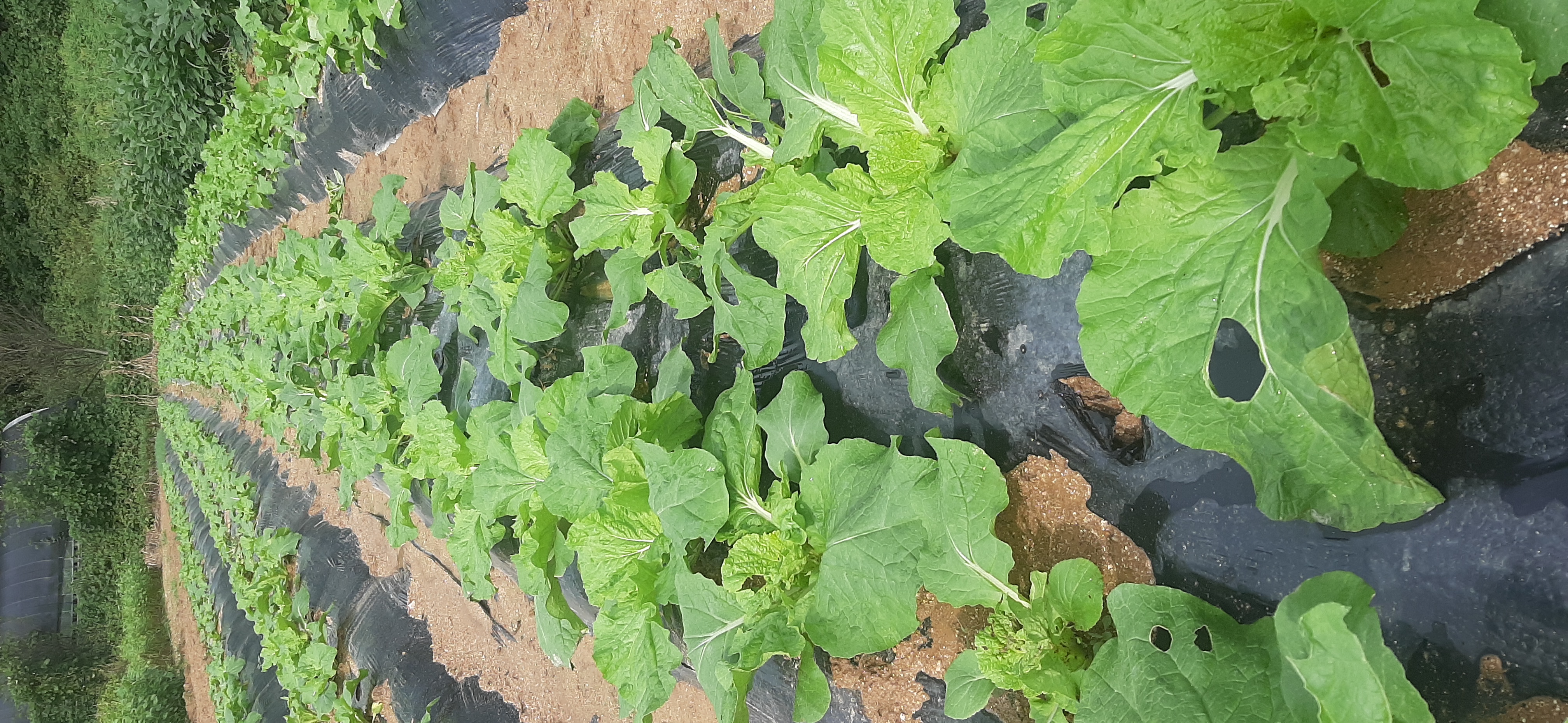 정식후 14일때 1차추비 (요소) 살포함 배추및 무우가 제법자랐네요.