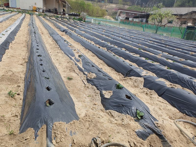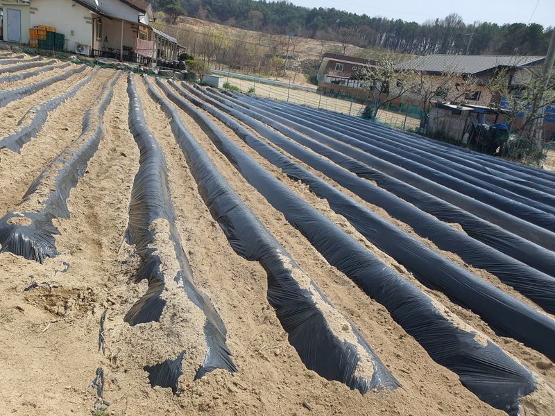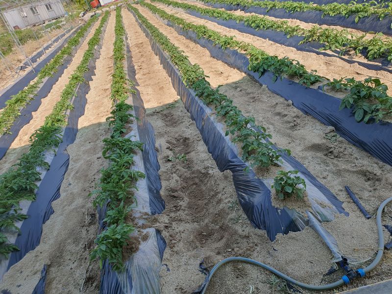 가을홍감자비닐멀칭하고홍감자 이십키로심엇다