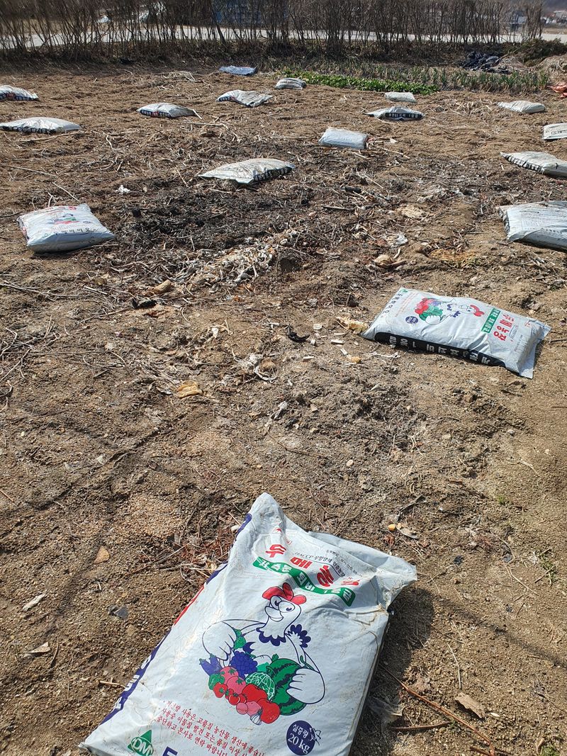 배추받만들기거름뿌리고복합비료뿌리고로타리치기