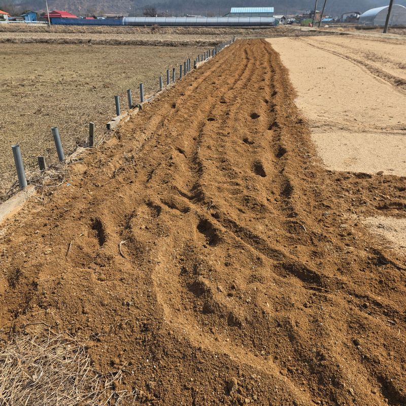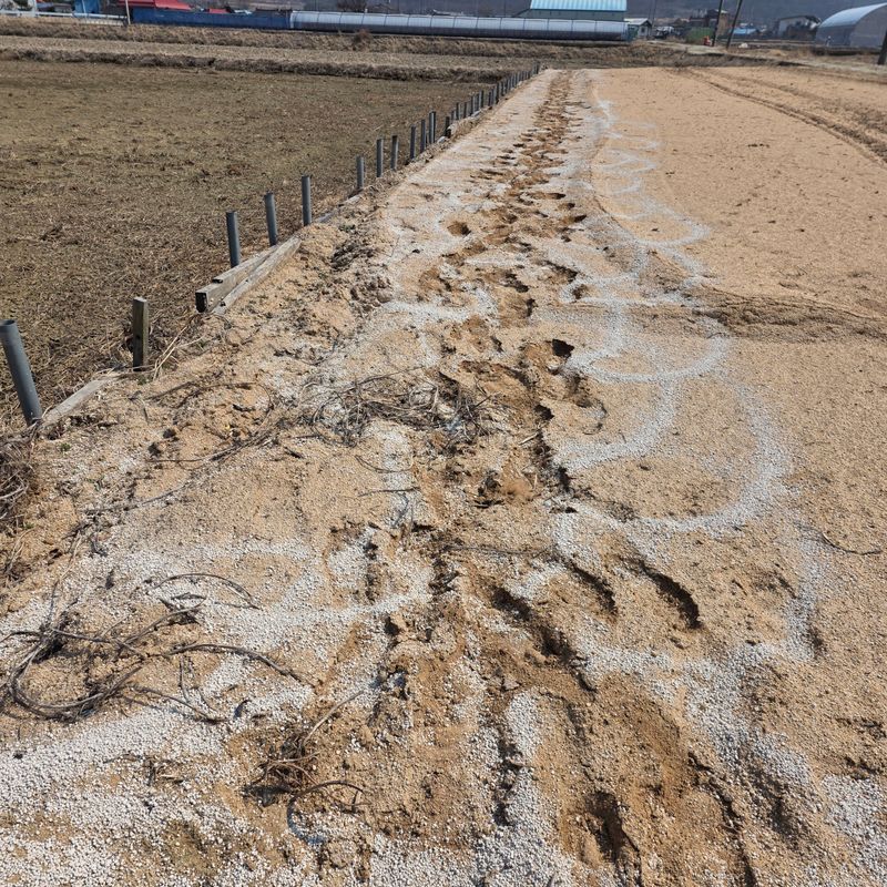 감자밭석회고토뿌리고로타리작업하기