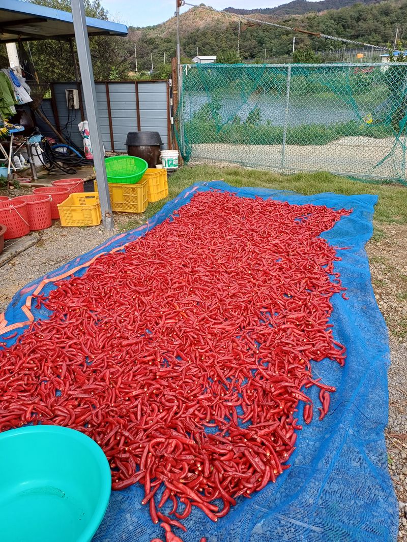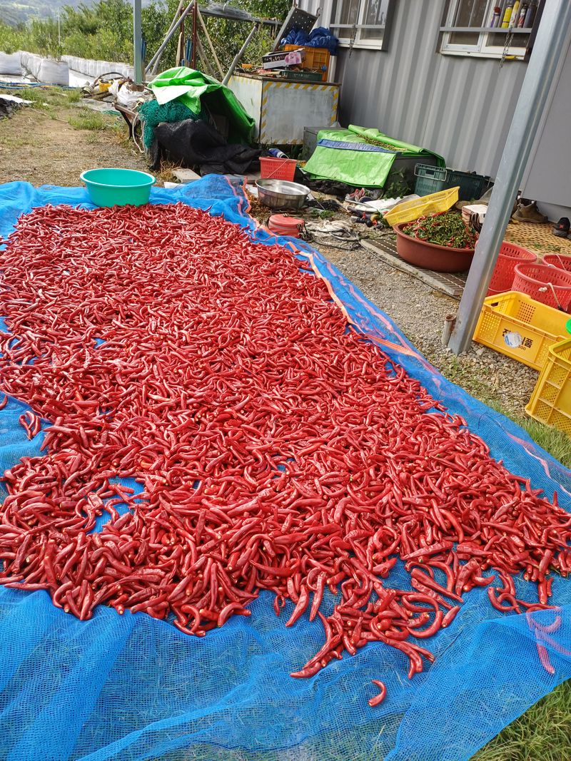 고추식고꼭지타기햇빛건조저녁에건조기투입할예정