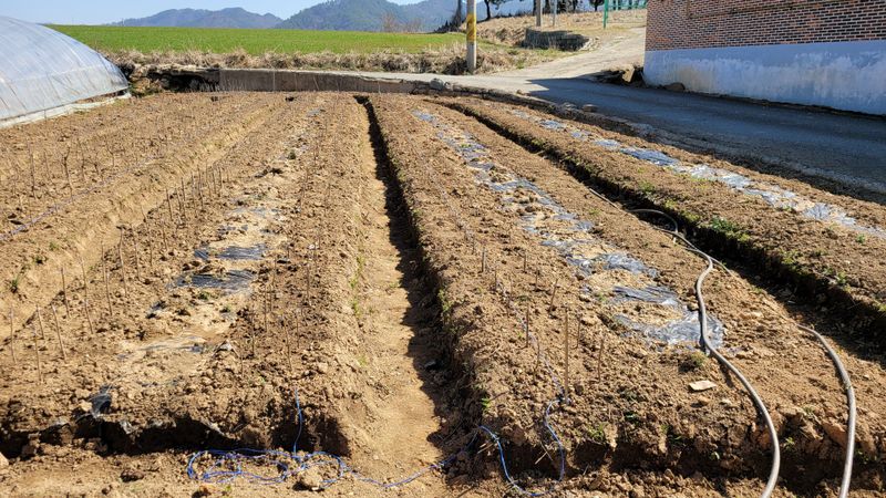 체리대목 북작업,체리대목노지삽목,풀뽑기 취나물 식재.방풍나물식재, 머위식재