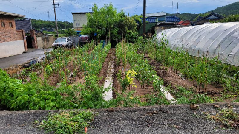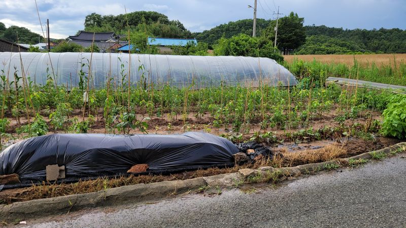 체리밭에 풀. ㅠ 비가맗이와서 ㅠ