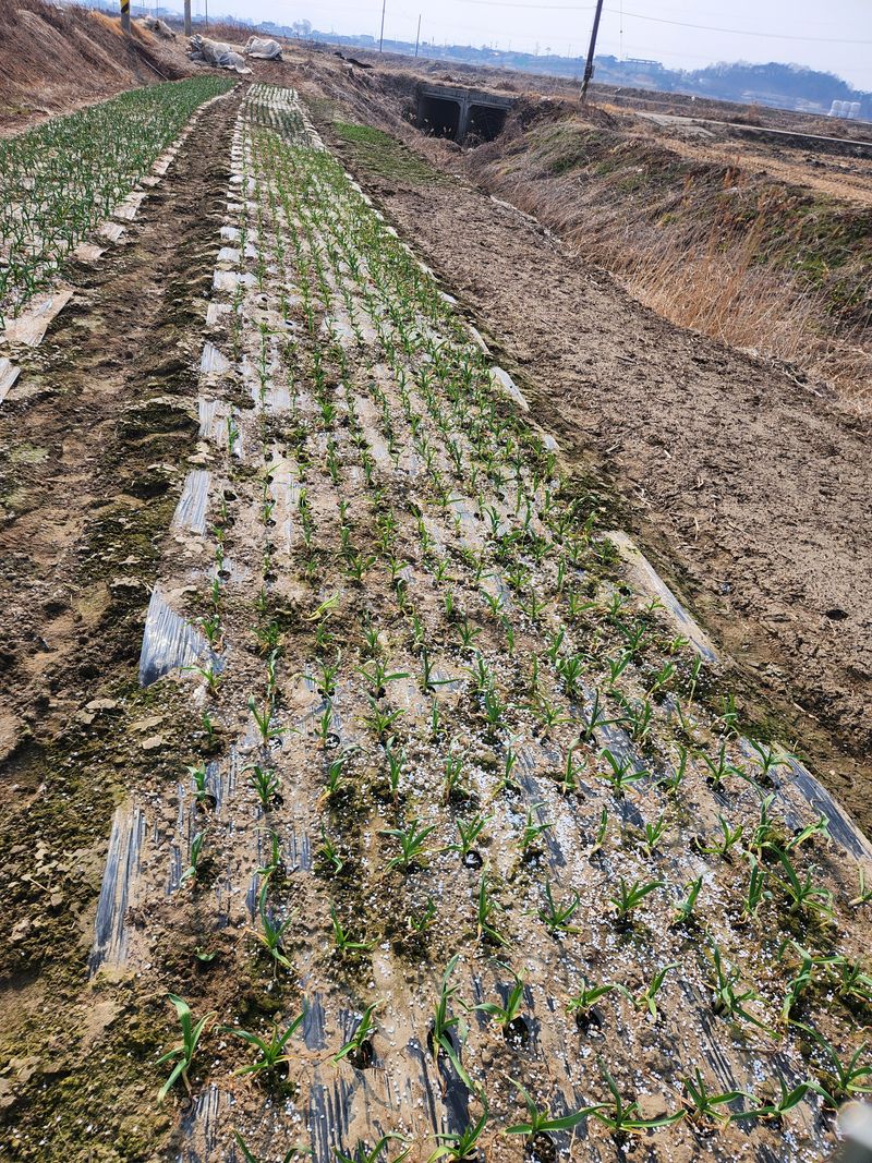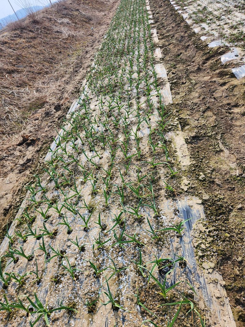 마늘.양파 부직포제거하고 1차추비하고살충제도 뿌렸어요. 홍산.홍산도야. 스페인마늘
