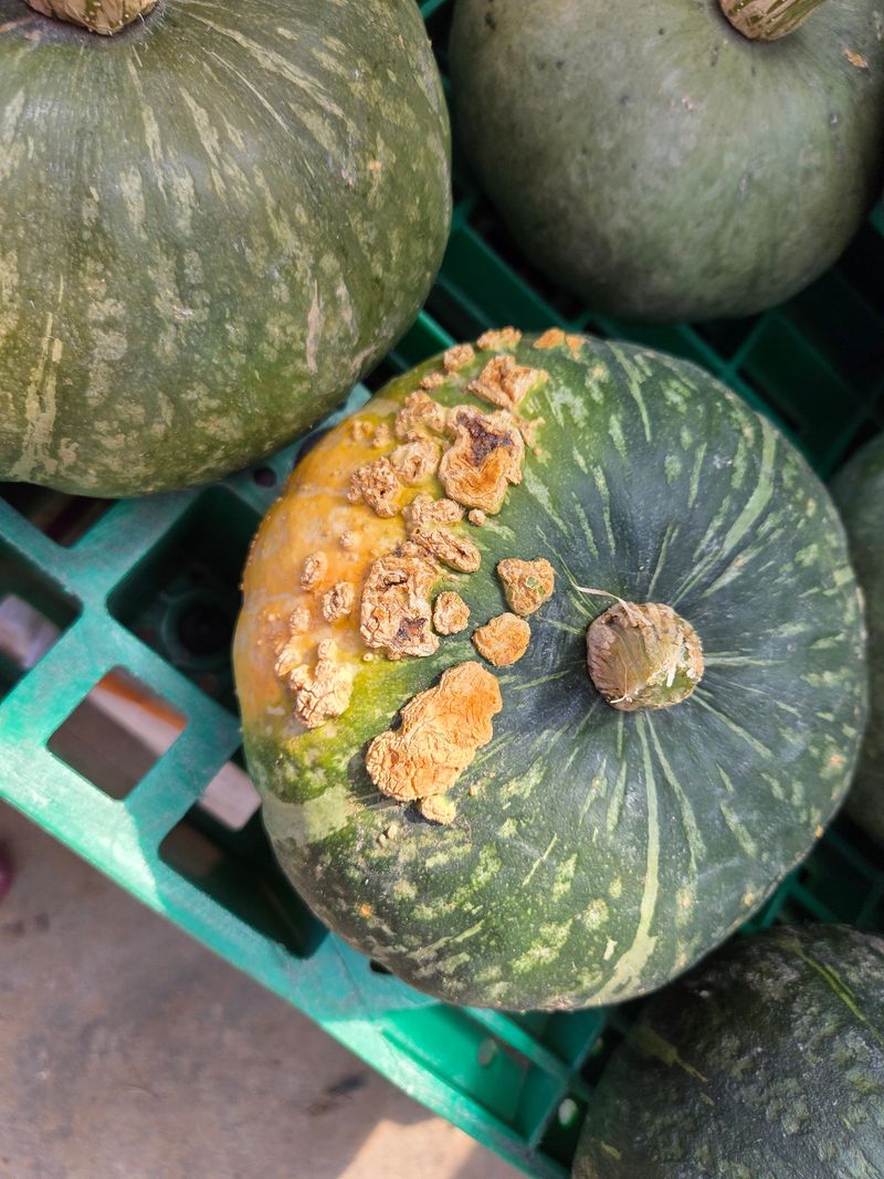 단호박 수확했어요. 사진처럼 생긴호박은 왜 그럴까요? 비닐없이 맨바닥에서 키우고 있어요
