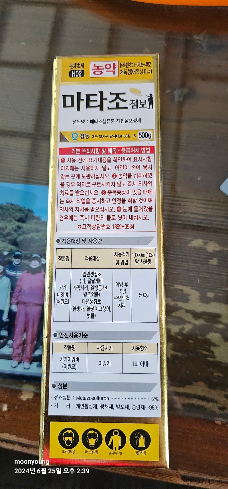 모내기 완료 20일후 제초제시약 6월26일 예정