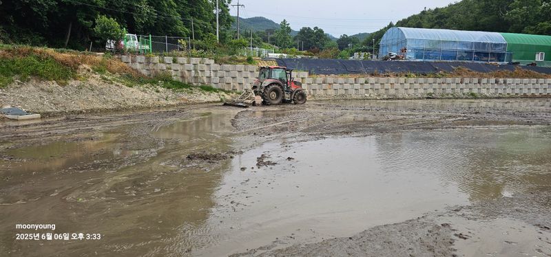 물깊이대기 모내기전 흙고르기 배수관로 논두렁재배치