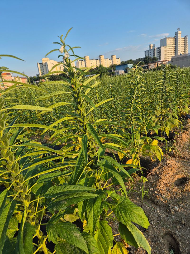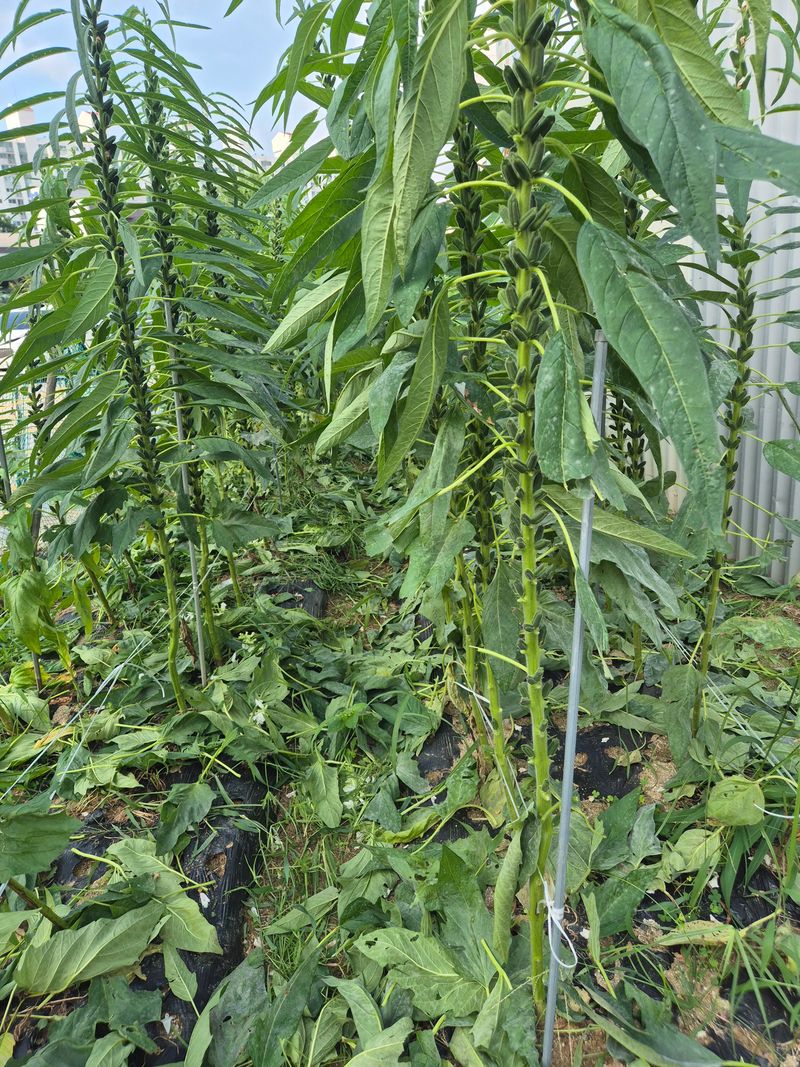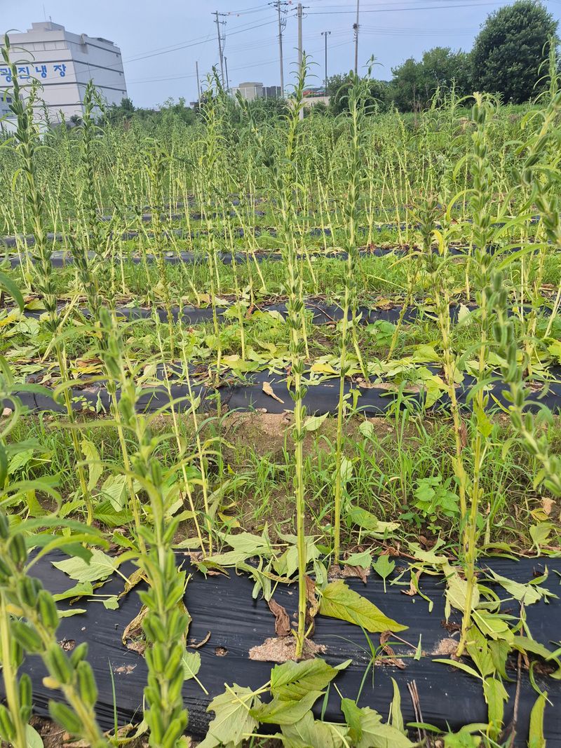 참깨잎정리및 어제벤 참깨 하우스