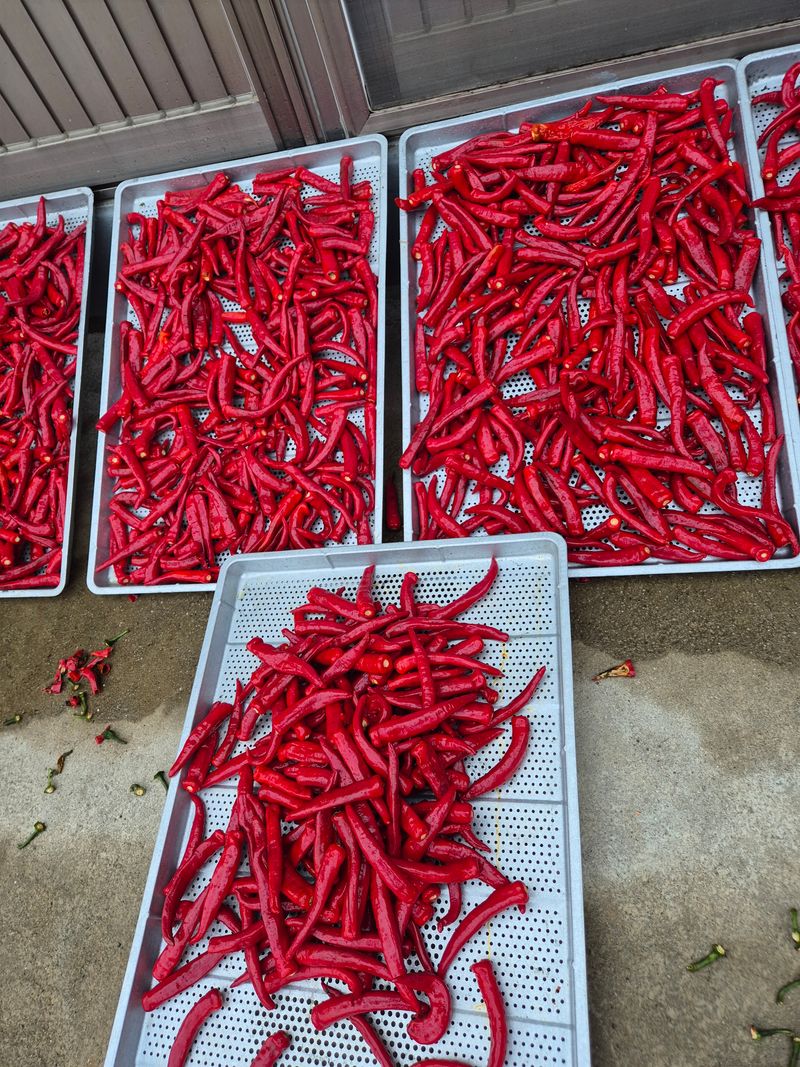 고추수확하고 세척해서 건조기투입