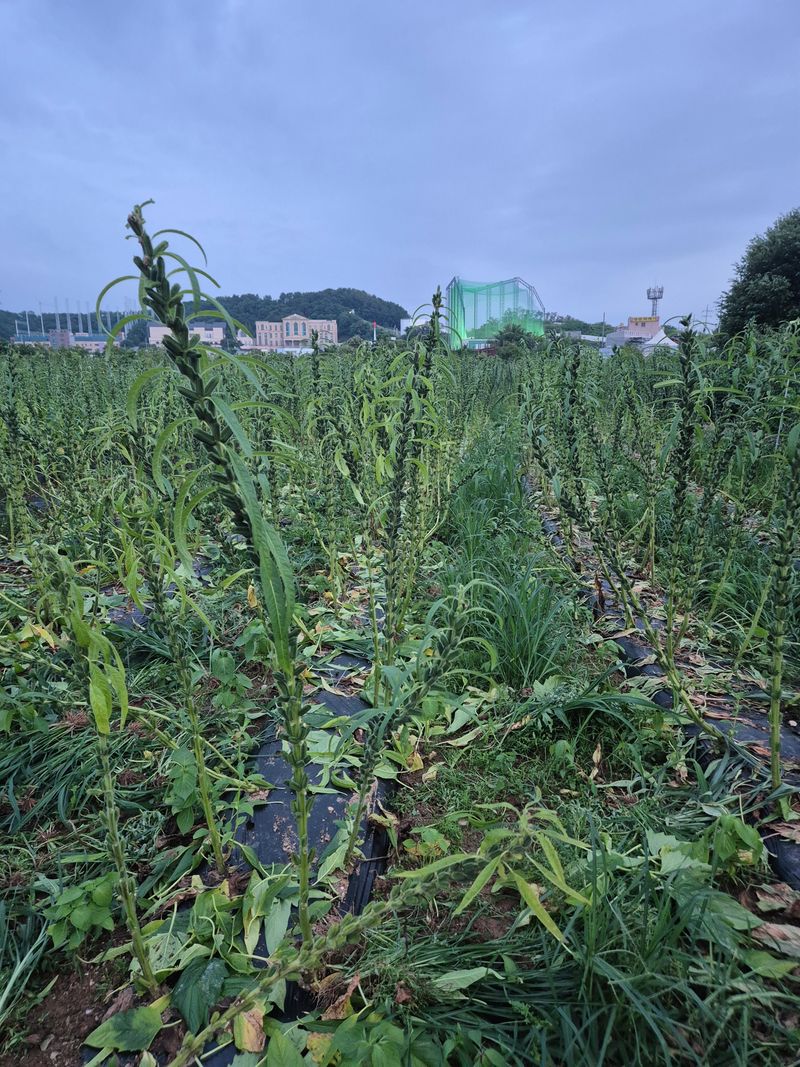 고구마수확중 옆 들깨밭
