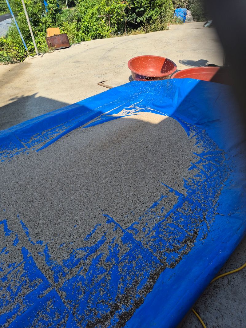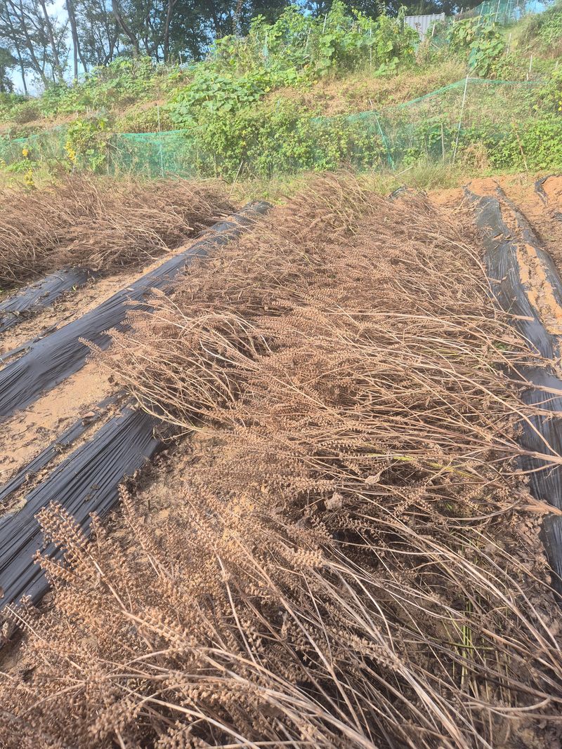 백장군참깨 1차털어 정선 말리고있음