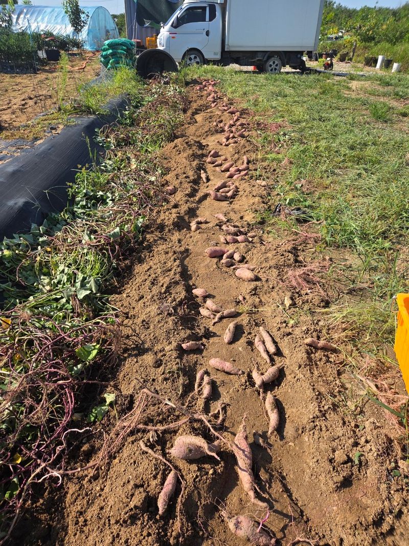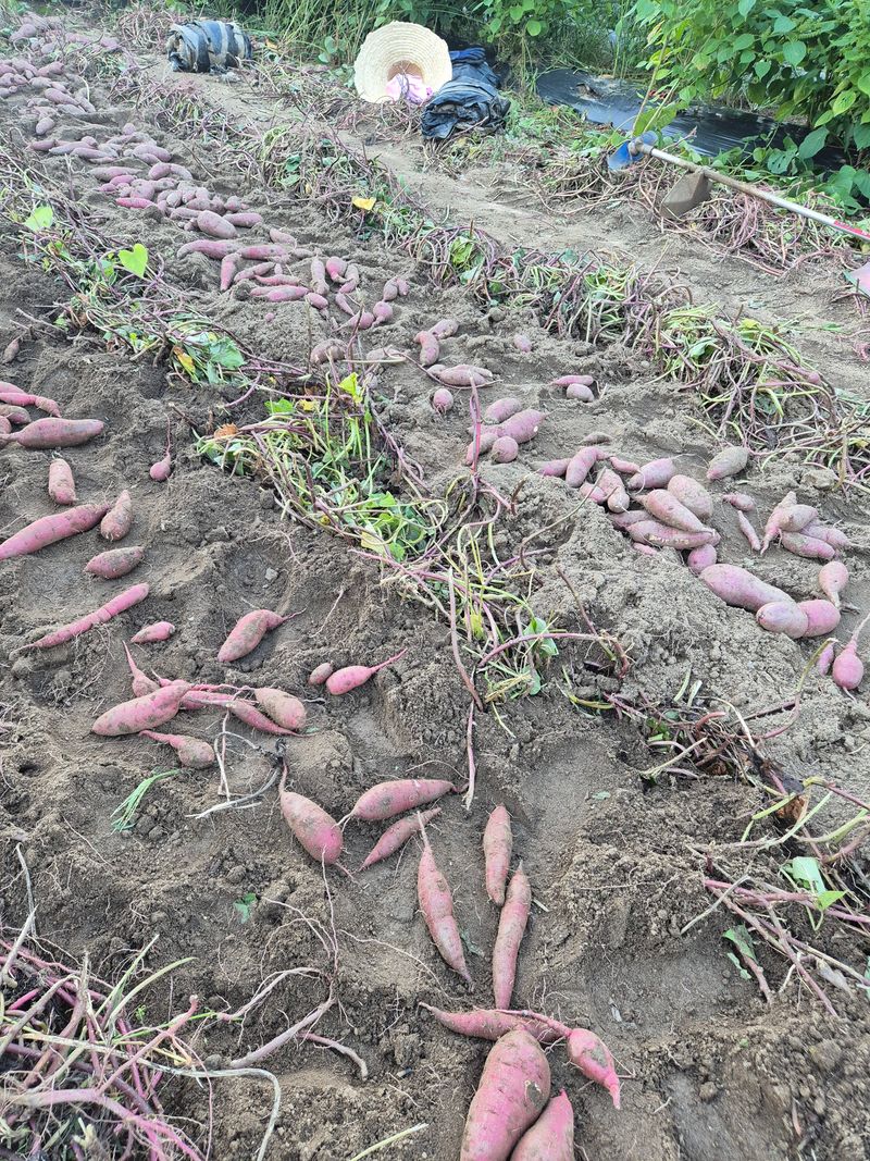 고구마 한줄캐고 비가와서 철수