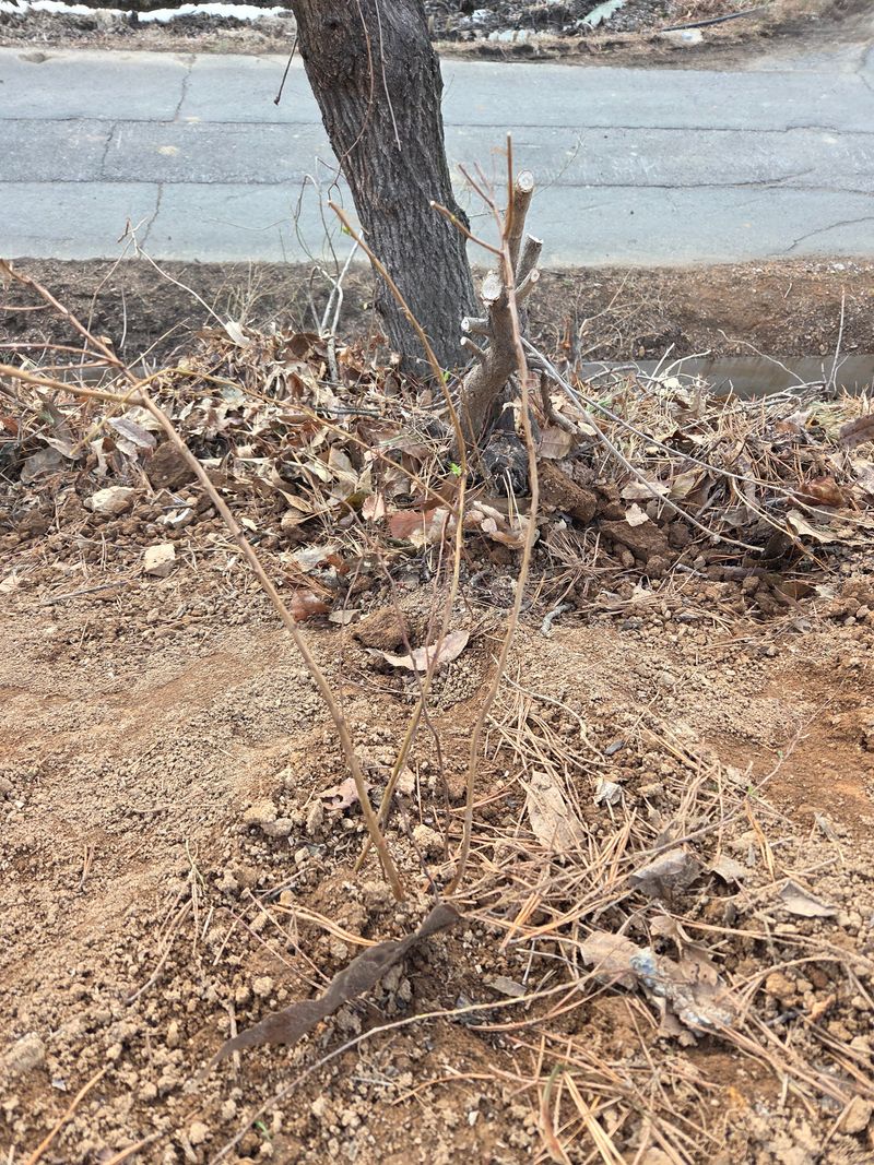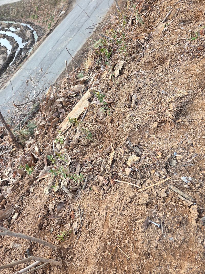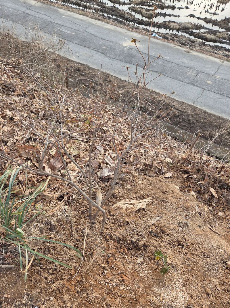 나무 자른 언덕길 조팝나무 회양목식제