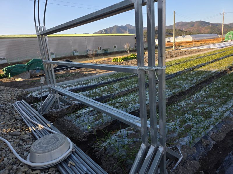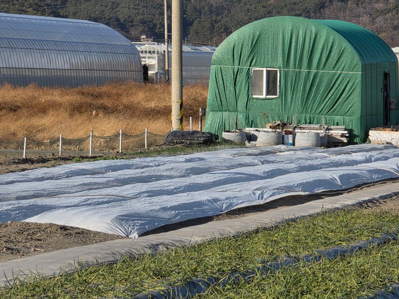 1)앵농원 6쪽마늘,양파 부직포걷기후살균제.살충제.류해스 혼합살포.토양살충제 입제살포.대서종.동농약살포. 2) 이영구형님 퇴피 지산밭3대 준비.
