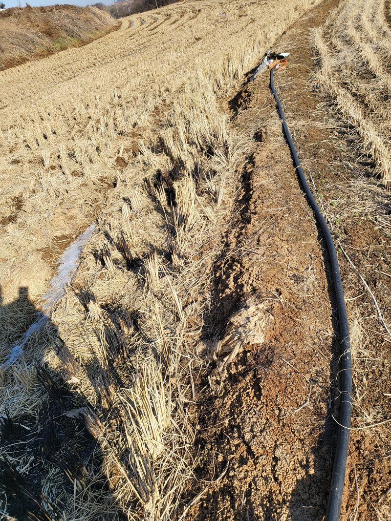 오늞 마늘밭에 마늘비료를 주었고매실나무 복숭아나무 사과나무 대추나무 호도나무등에게 살충제와 유황을 살포하고 왔습니다 윗논에 지하수모터를 연결하였습니다