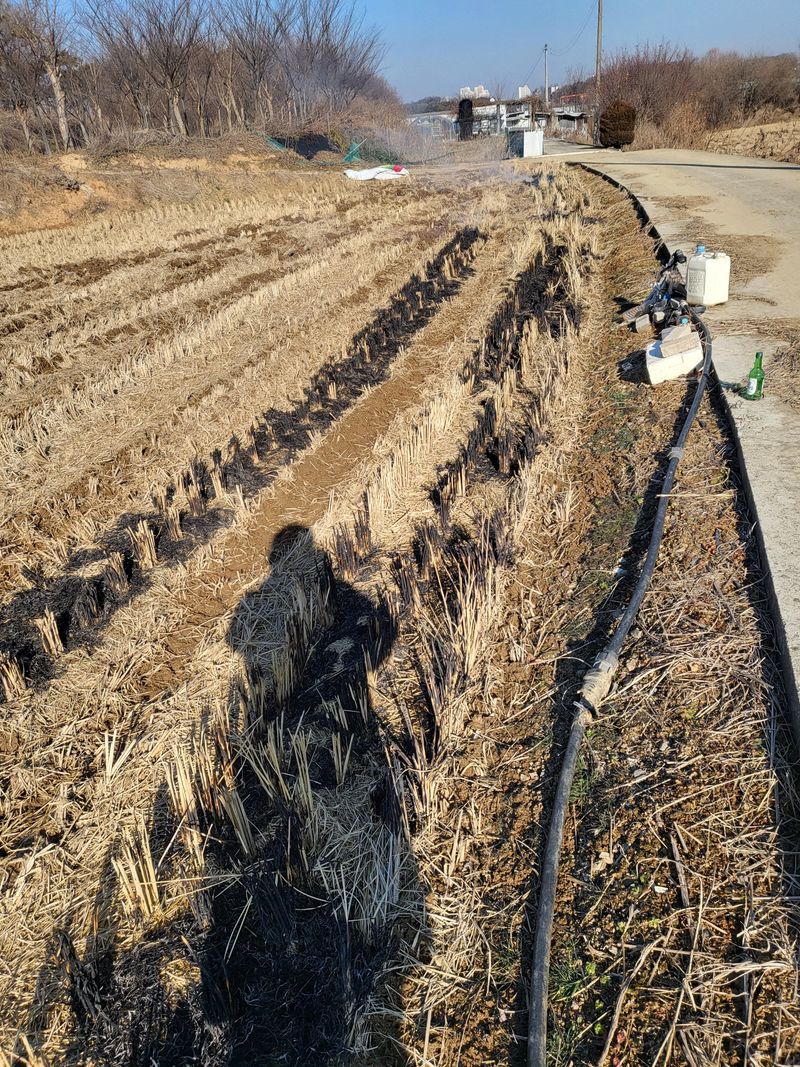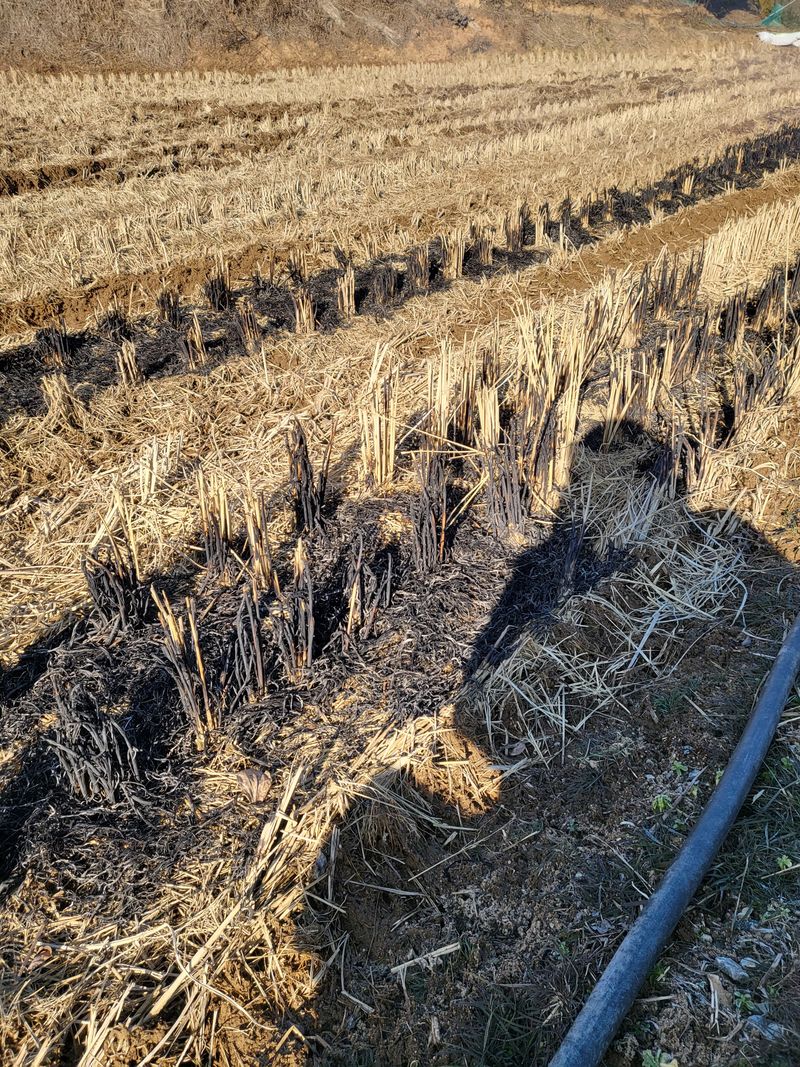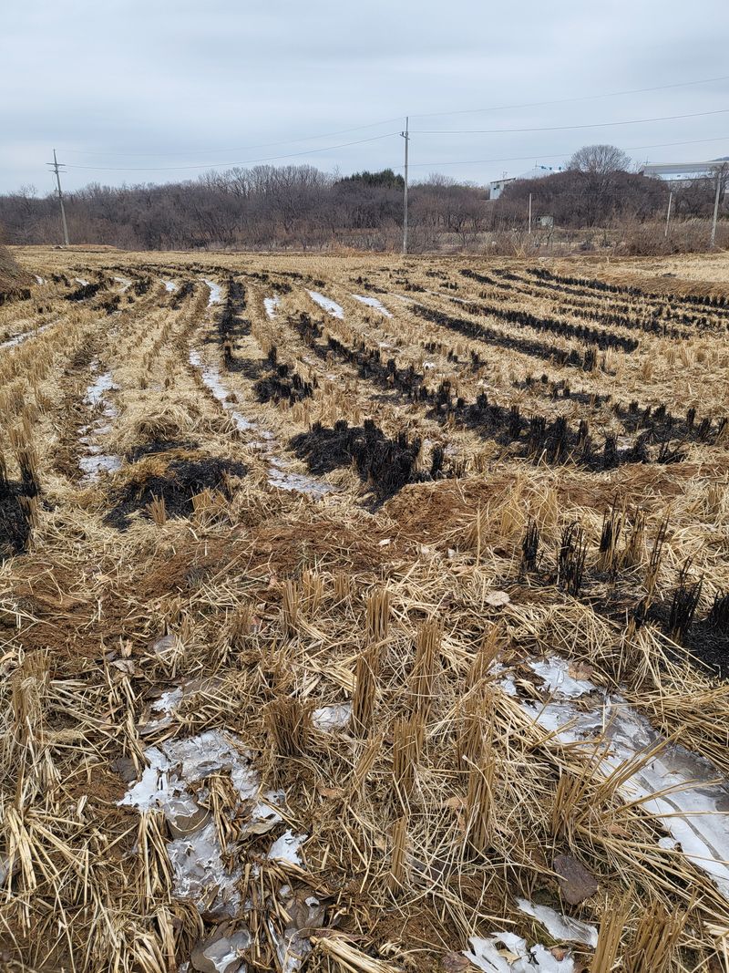 오늘 오전8시반경 논에 가보앗은데 간밤에 실눈이 약간와서 돌아보소 농막에서 쉬다가 와서 점심식사후에 오후2시반경 다시 가서 논바닥에 벼집을 태우고 왔어요 물론 추수할때 콤바인에서 잘려 나온겁니다 매년 모내기철에 찌꺼기들이 많아서 힘들었어요 그래서 태우는거지요 오후3시반...