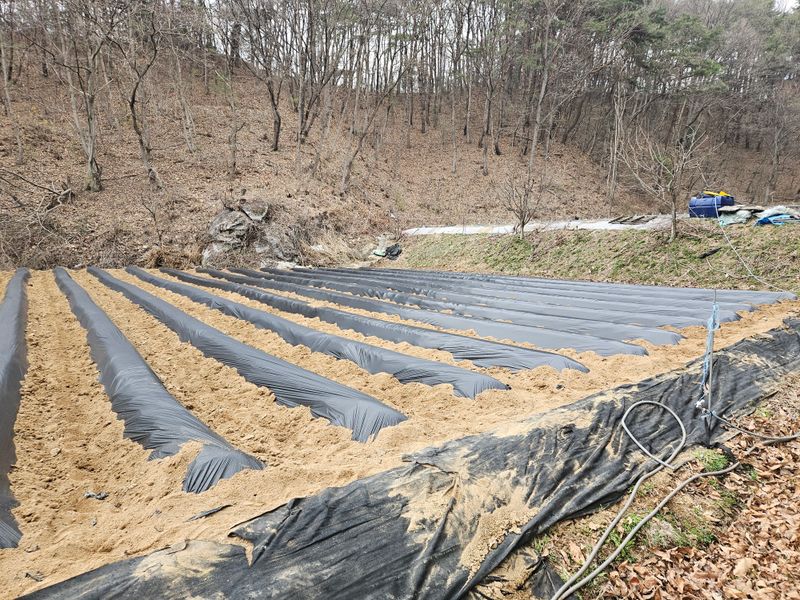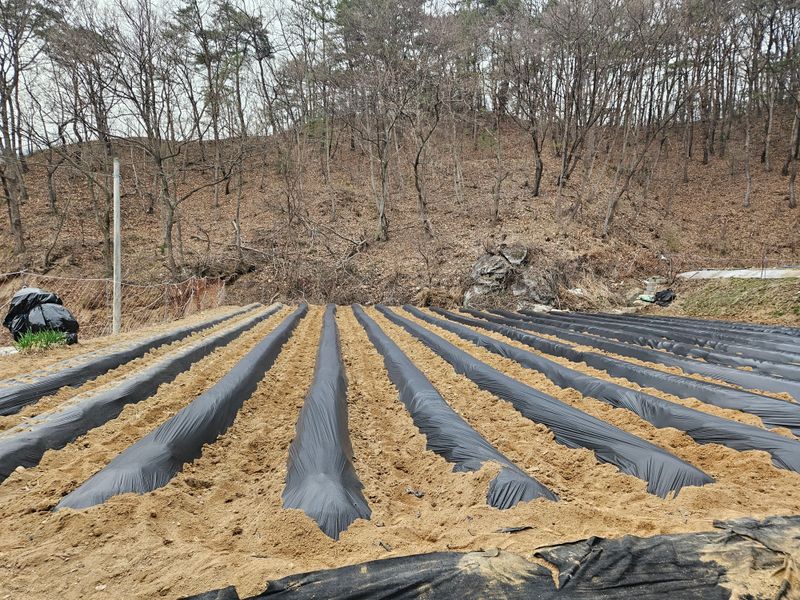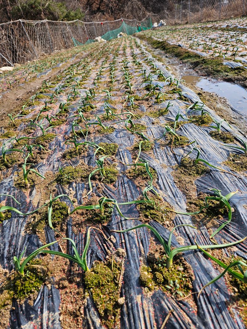 오늘마늘 밭을 했볓을보게 부직포를 제거했읍니다
