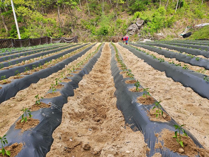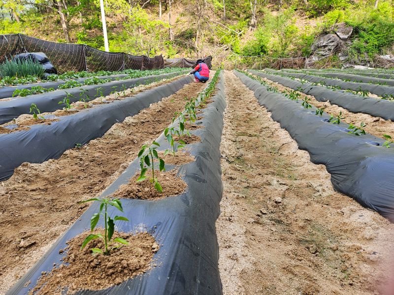 고추심기를 하였읍니다 아침 온도가 상승하여 괜찮겠죠