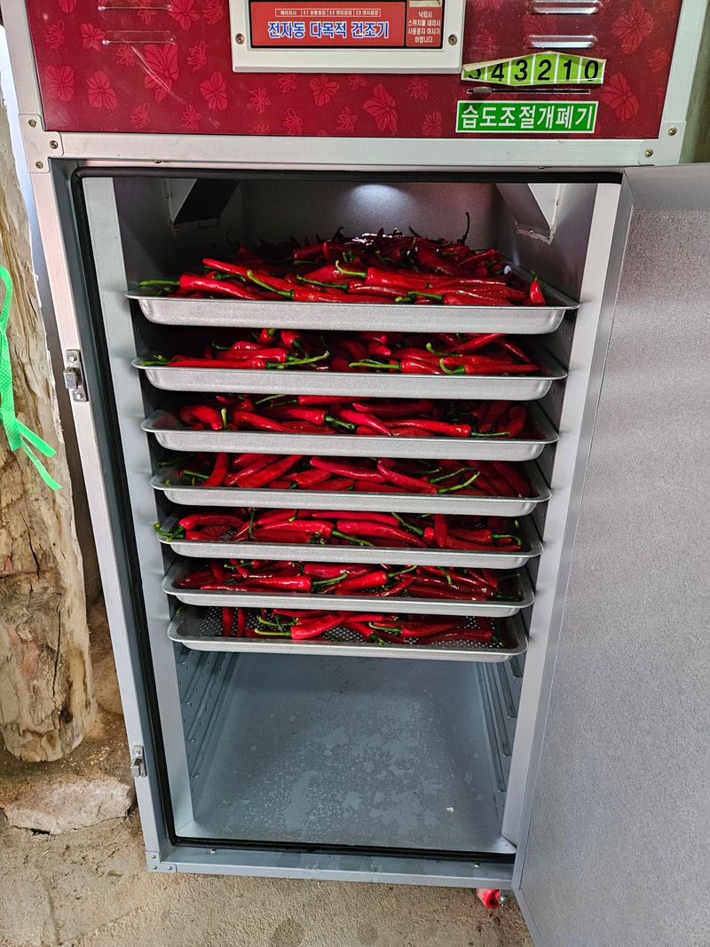 오늘고추 3물 수확해서 잘씼어 건조기에 말리고 있어요