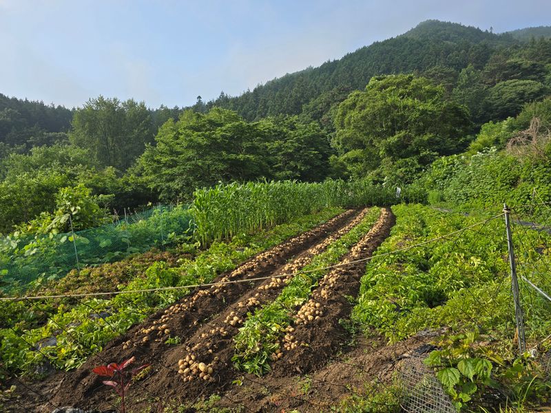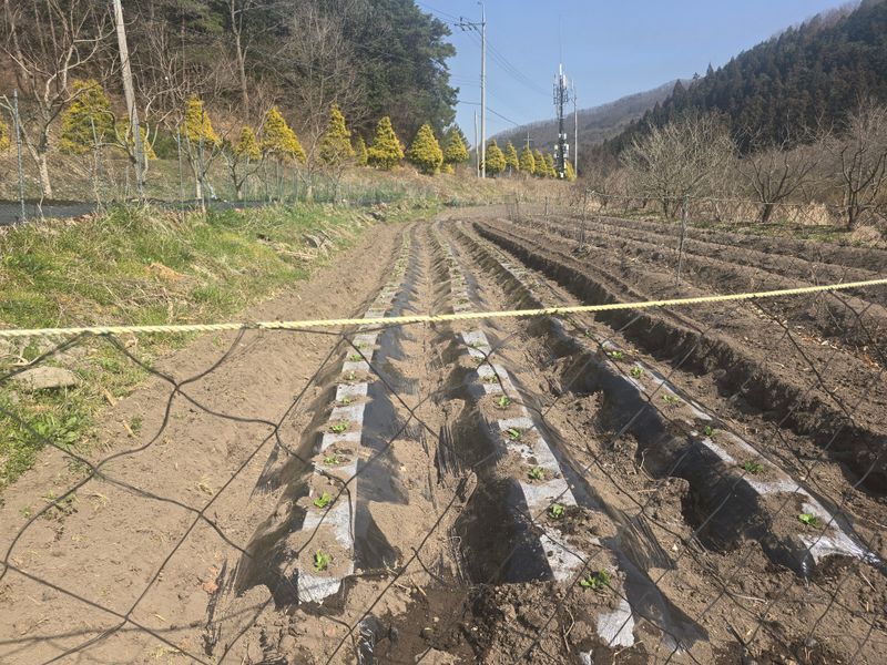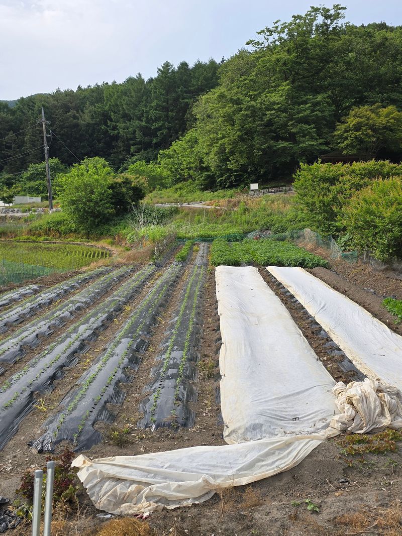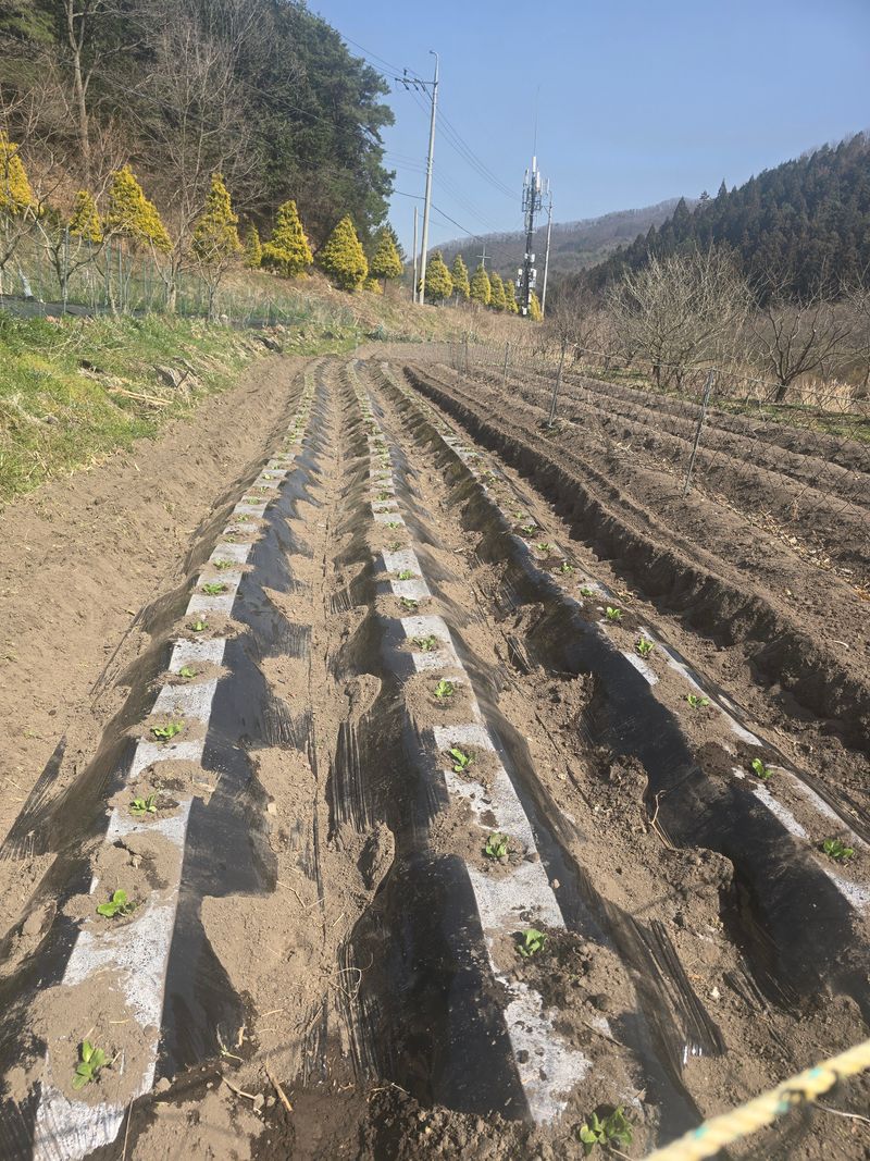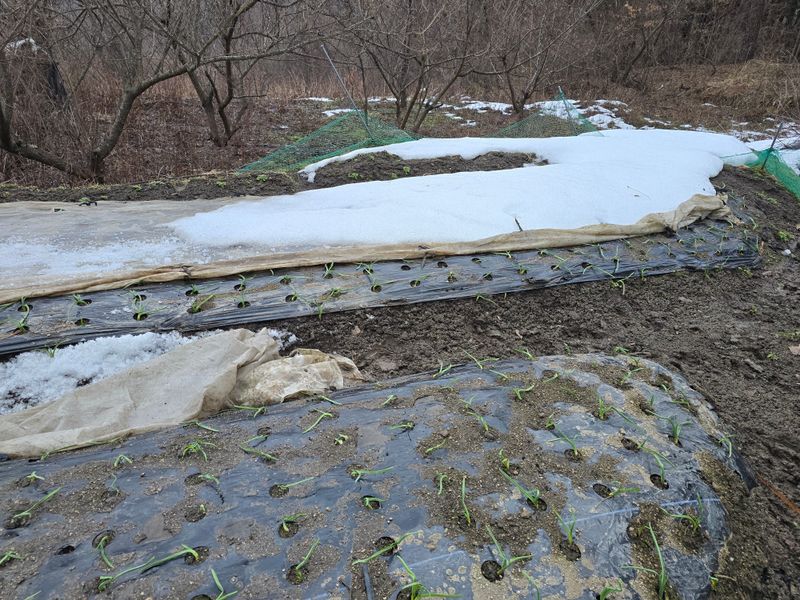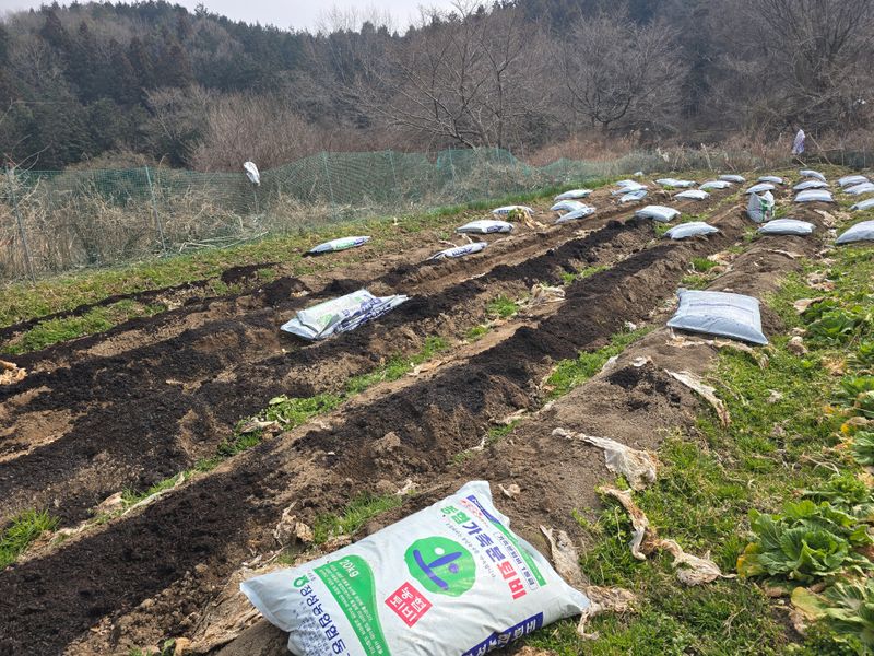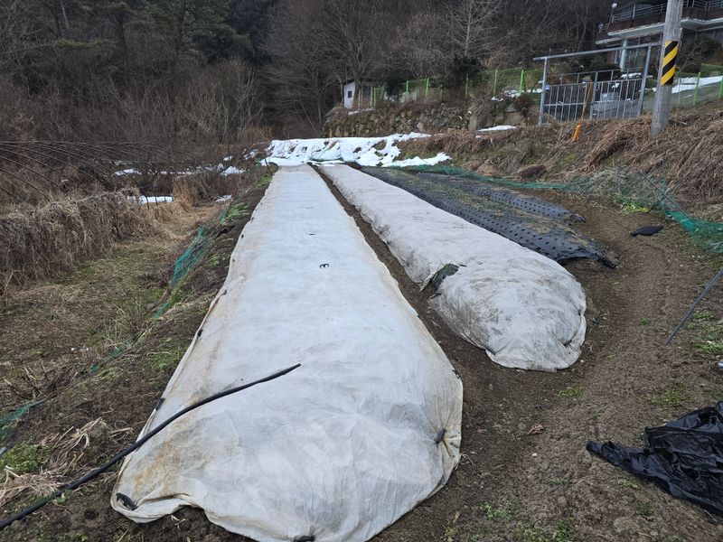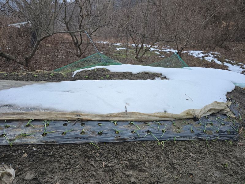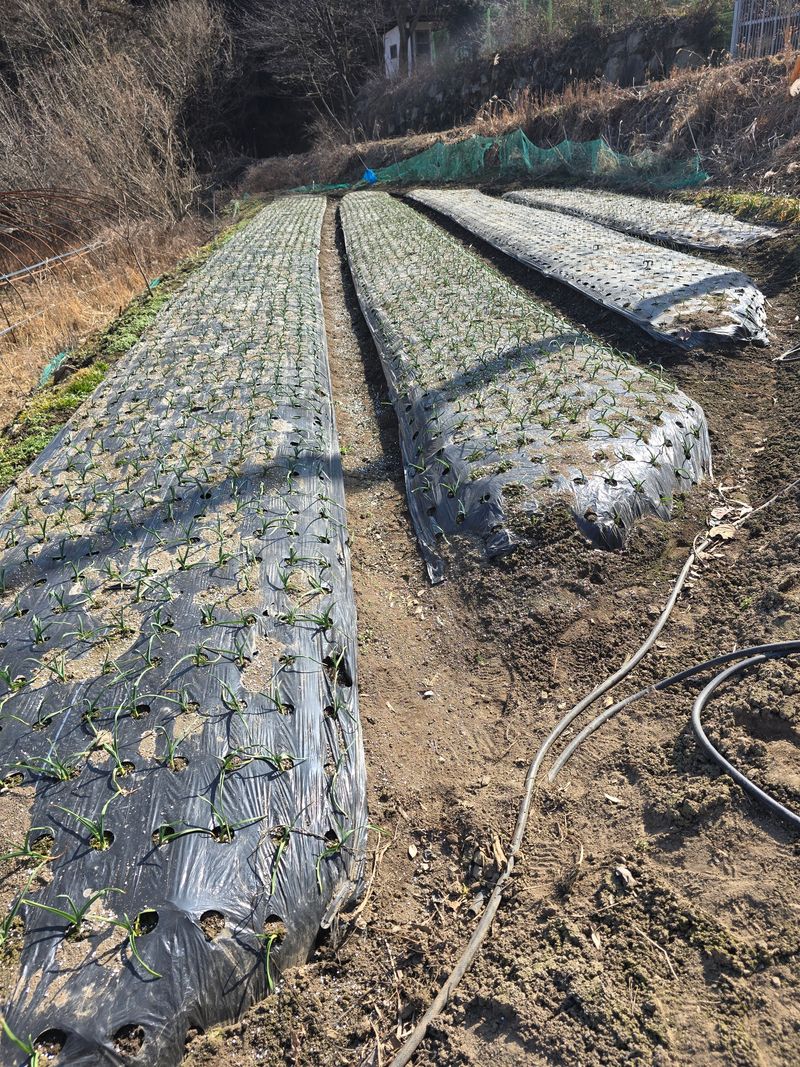 비가온다고 해서 마늘밭 부직포 걷어내고 요소비료 뿌리고 왔네요. 여기는 아직도 눈이 덜녹아서 이제야 부직포를~~