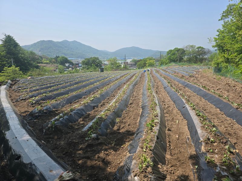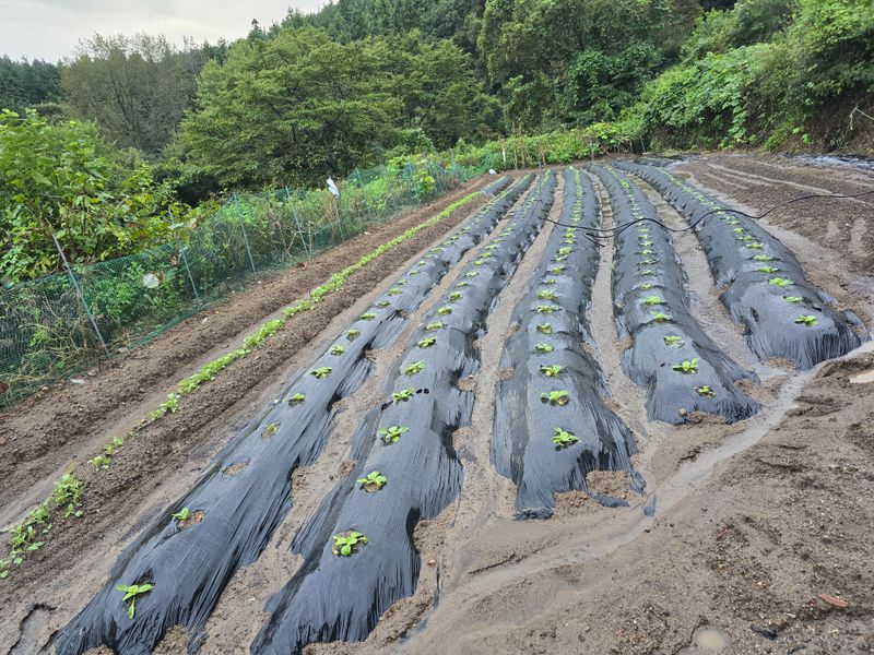 참깨 심은거 부직포 걷어내고 안난곳 다시 심었다.