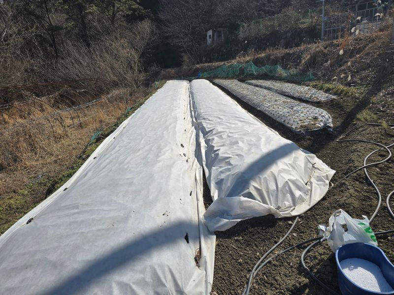 마늘밭 부직포 걷어내고 비료. 토양살충제 살포~^^