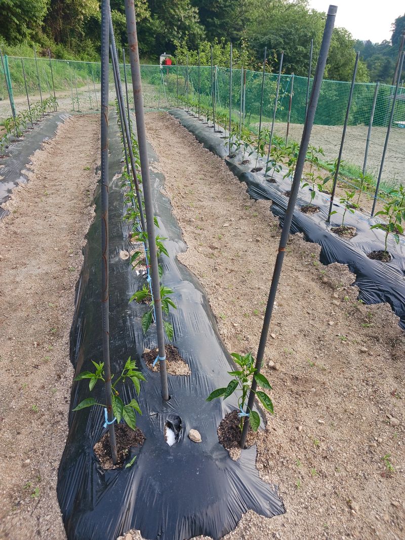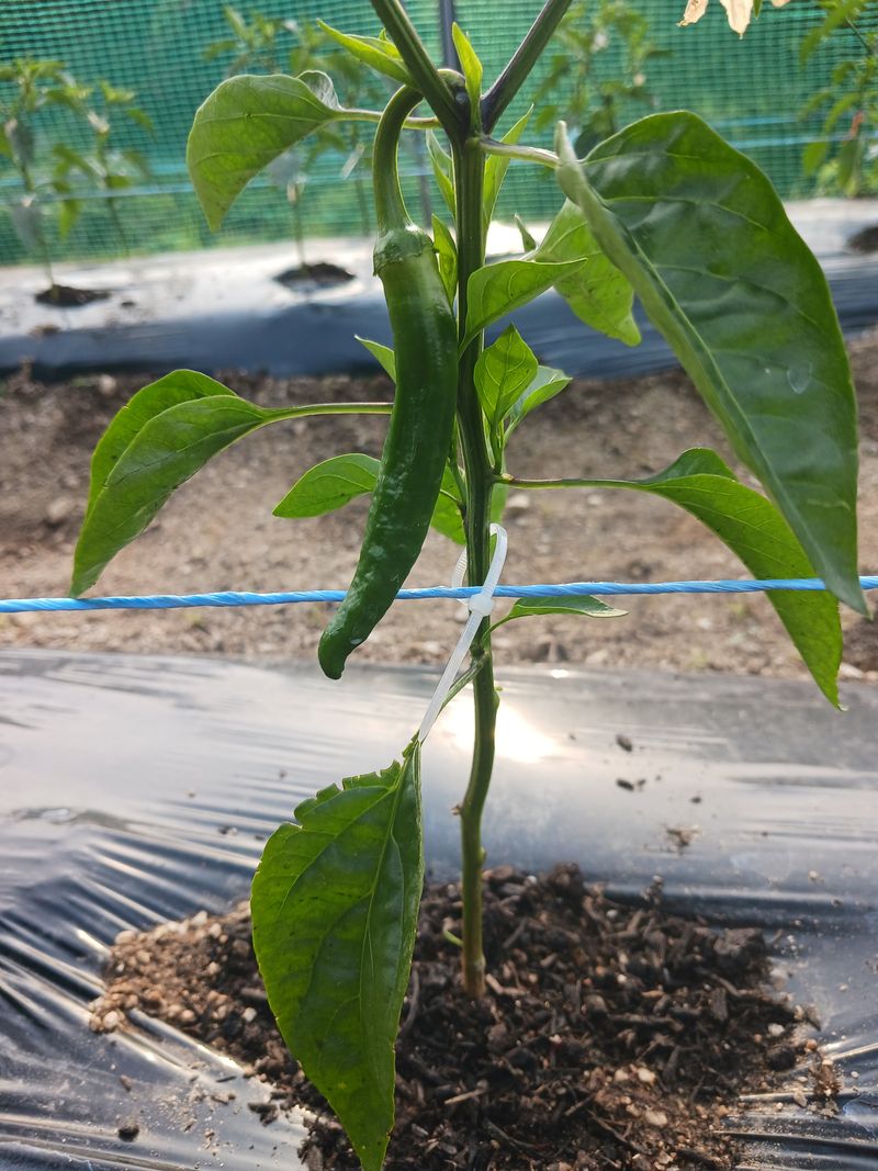 고추 고랑에 제초제. 치고 웃 비료 주웠다 요소를. 주웠다 벌써 꽃이 피고 고추가 열였다