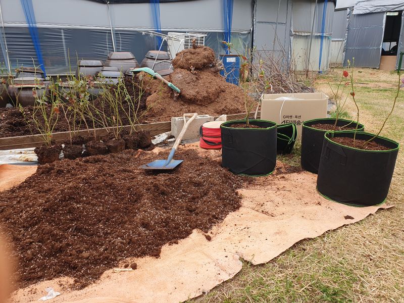블루베리 메도우락 30주 분갈이 참깨,들깨 밭 석회 뿌림