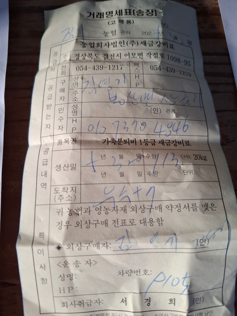 퇴비 ㅡ433포(새금강)수령 외상구매