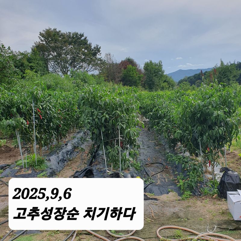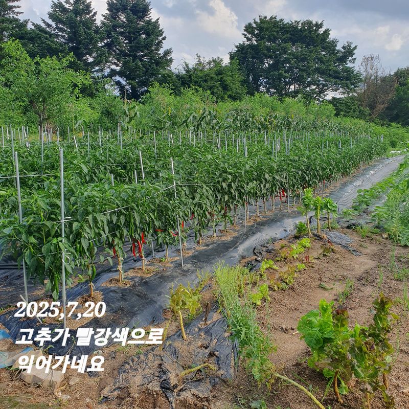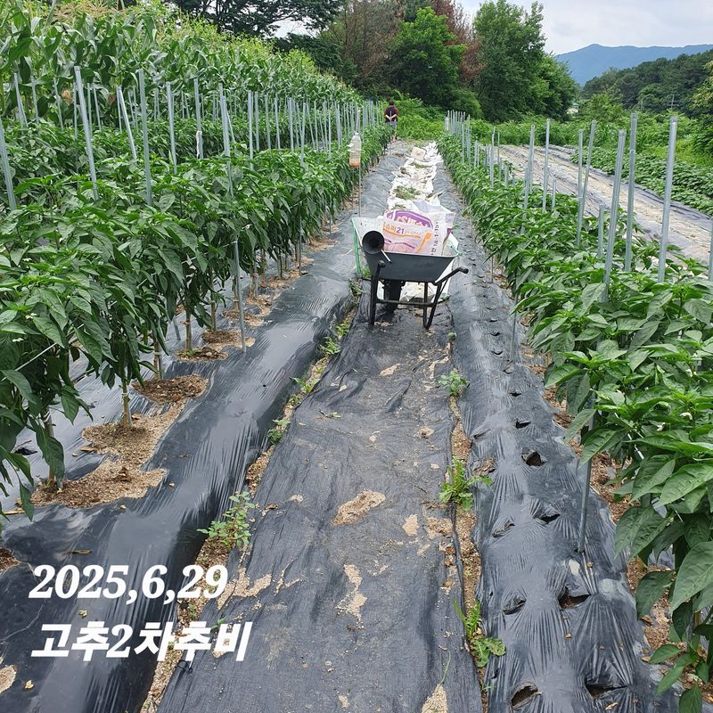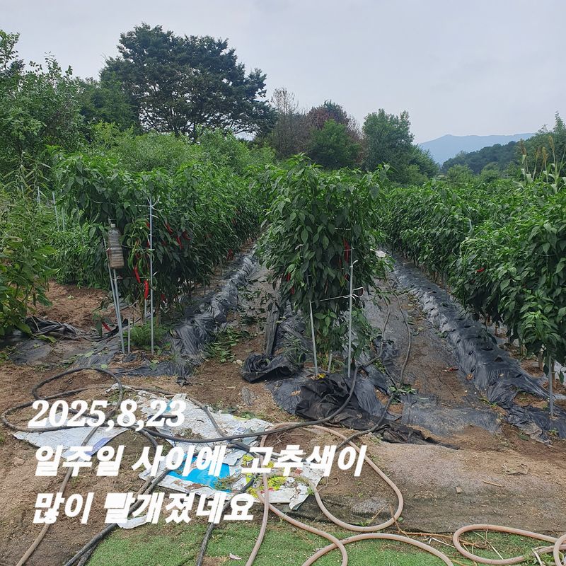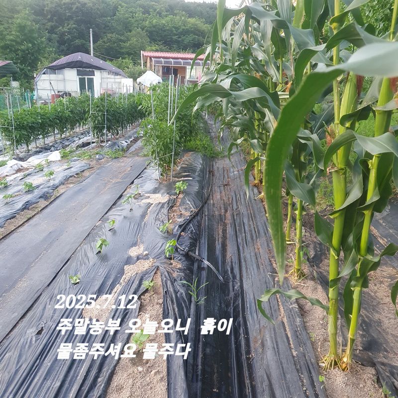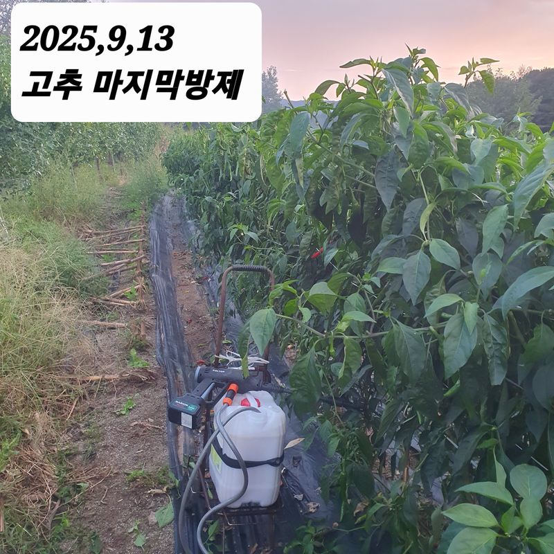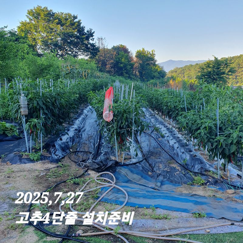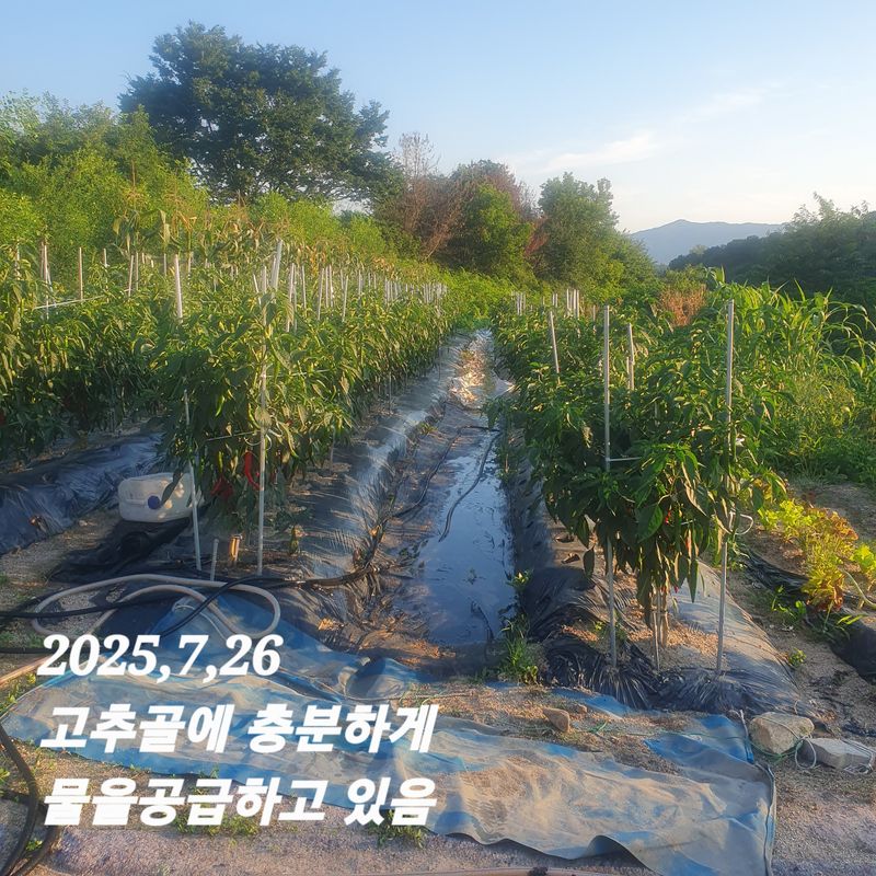 아침 6시 고추약 주다 살충제 살균제 미량요소 캴슘제 혼용살포 일주일후에 농장에오니 헛골에 물주고 두둑에 물주고 하루종일 물과씨름