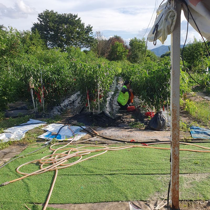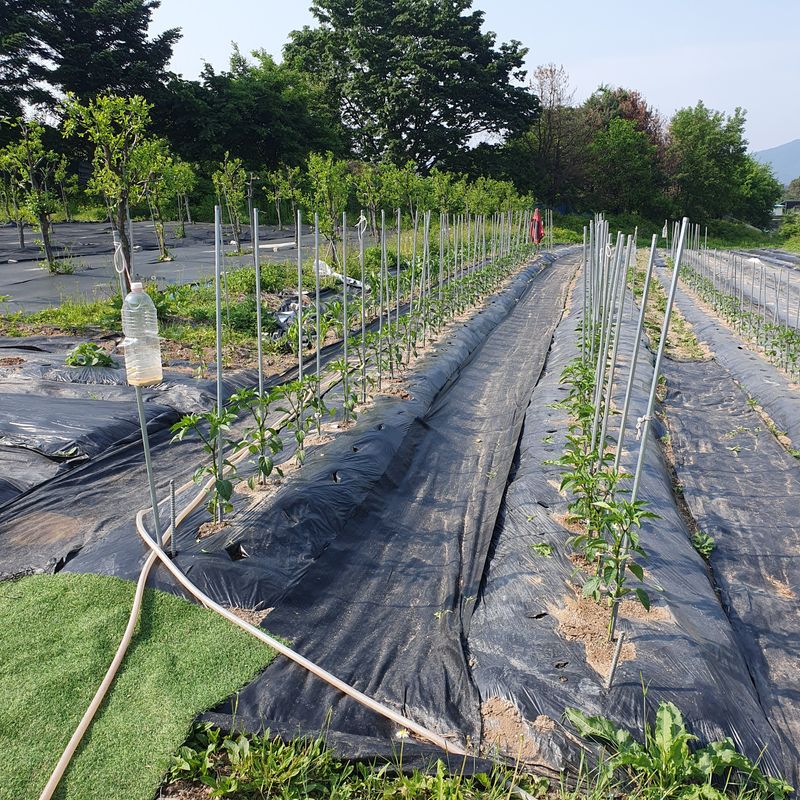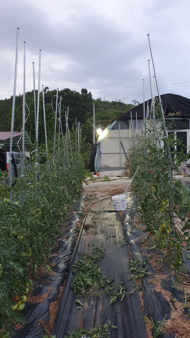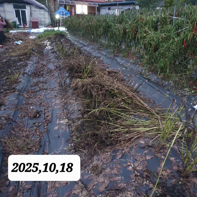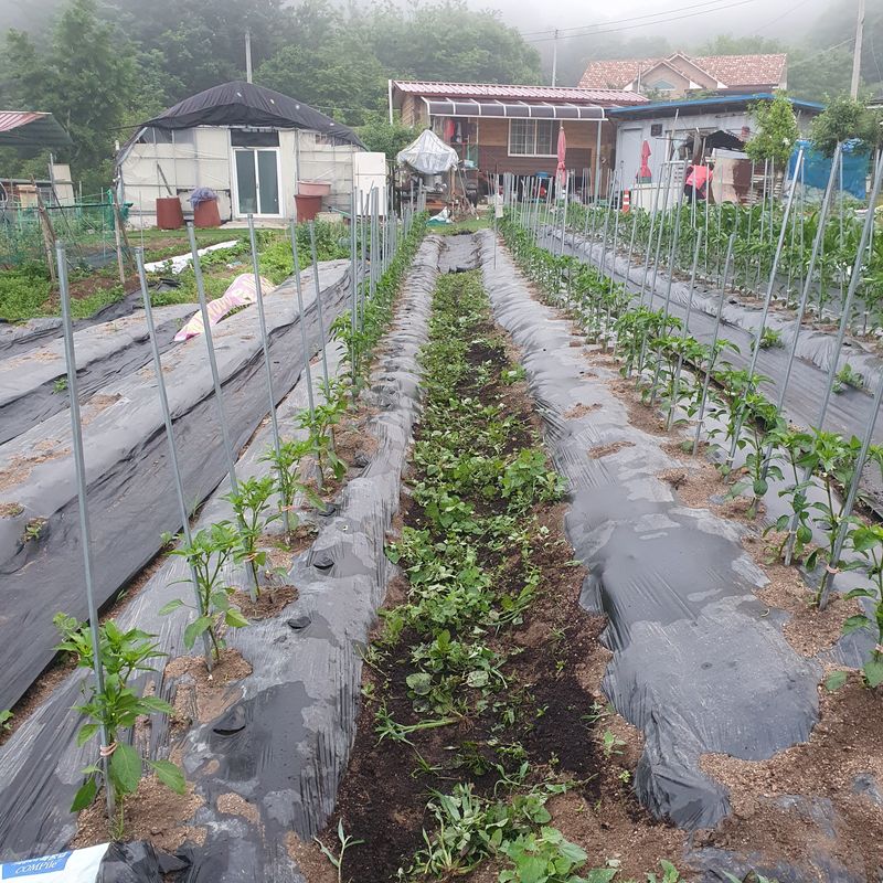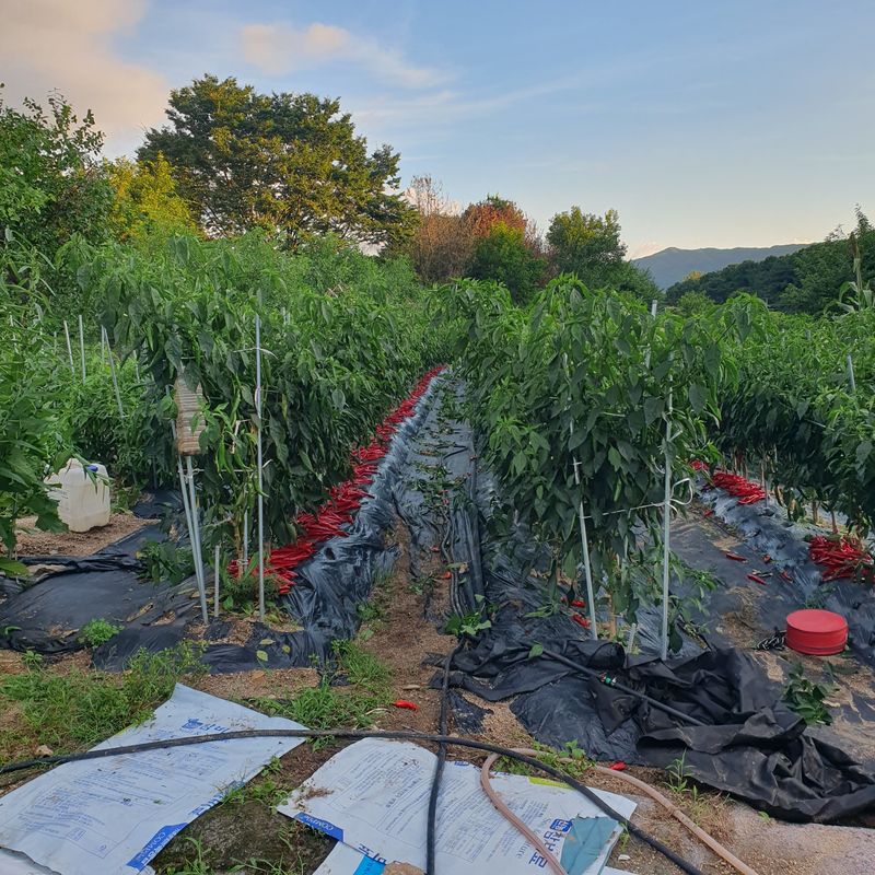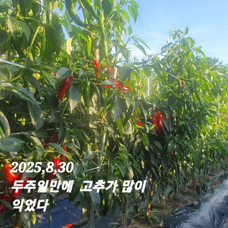 아침 6시 고추약 주다 살충제 살균제 미량요소 캴슘제 혼용살포 일주일후에 농장에오니 헛골에 물주고 두둑에 물주고 하루종일 물과씨름