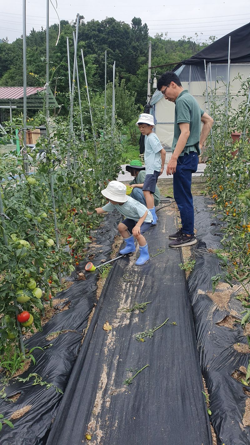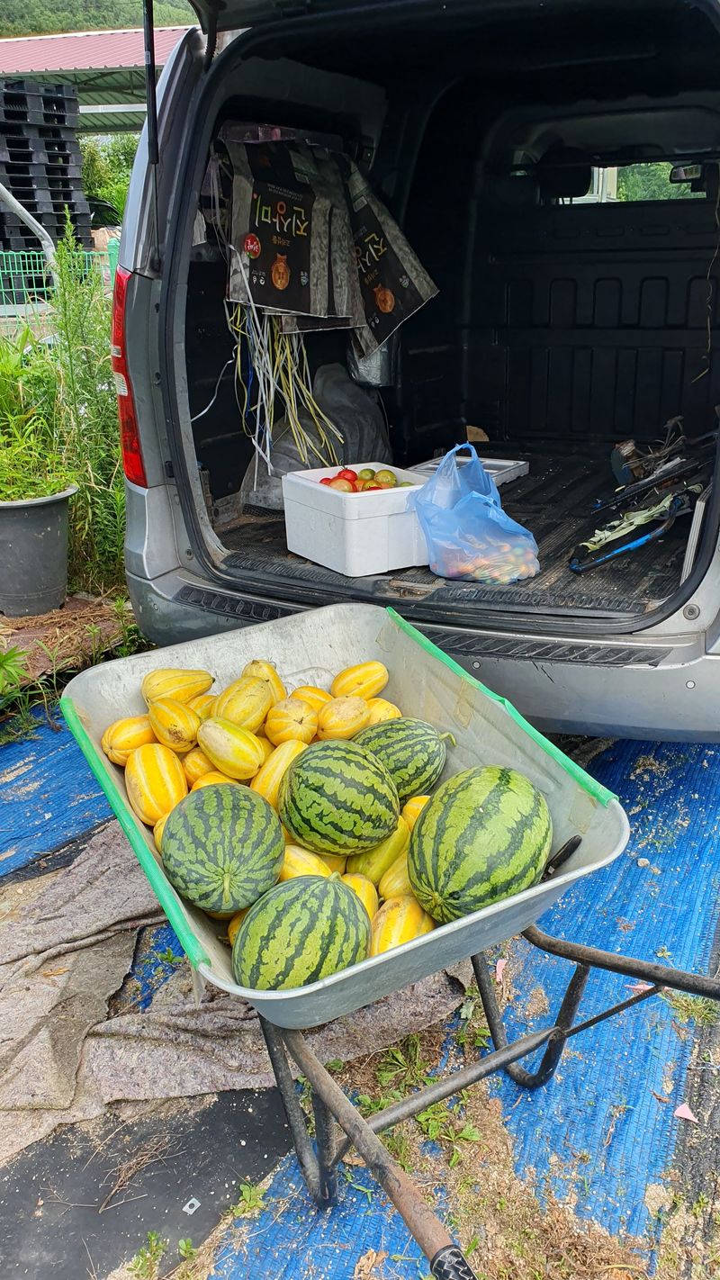 오늘은 아들,며느리,손자 모두다 농장으로 와서 수확의 기쁨을 나누다 수박,참외,토마토