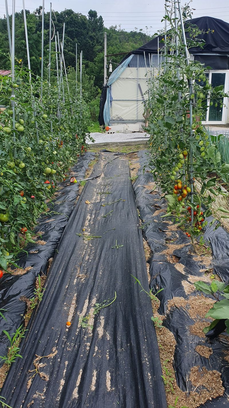 주말 농부라 오늘 늦게 비가내리는데 비닐멀칭 하다 쉽게 비닐옷 간단하게 만들어서 입었지 너무 궁상맞나 ㅎㅎㅎ