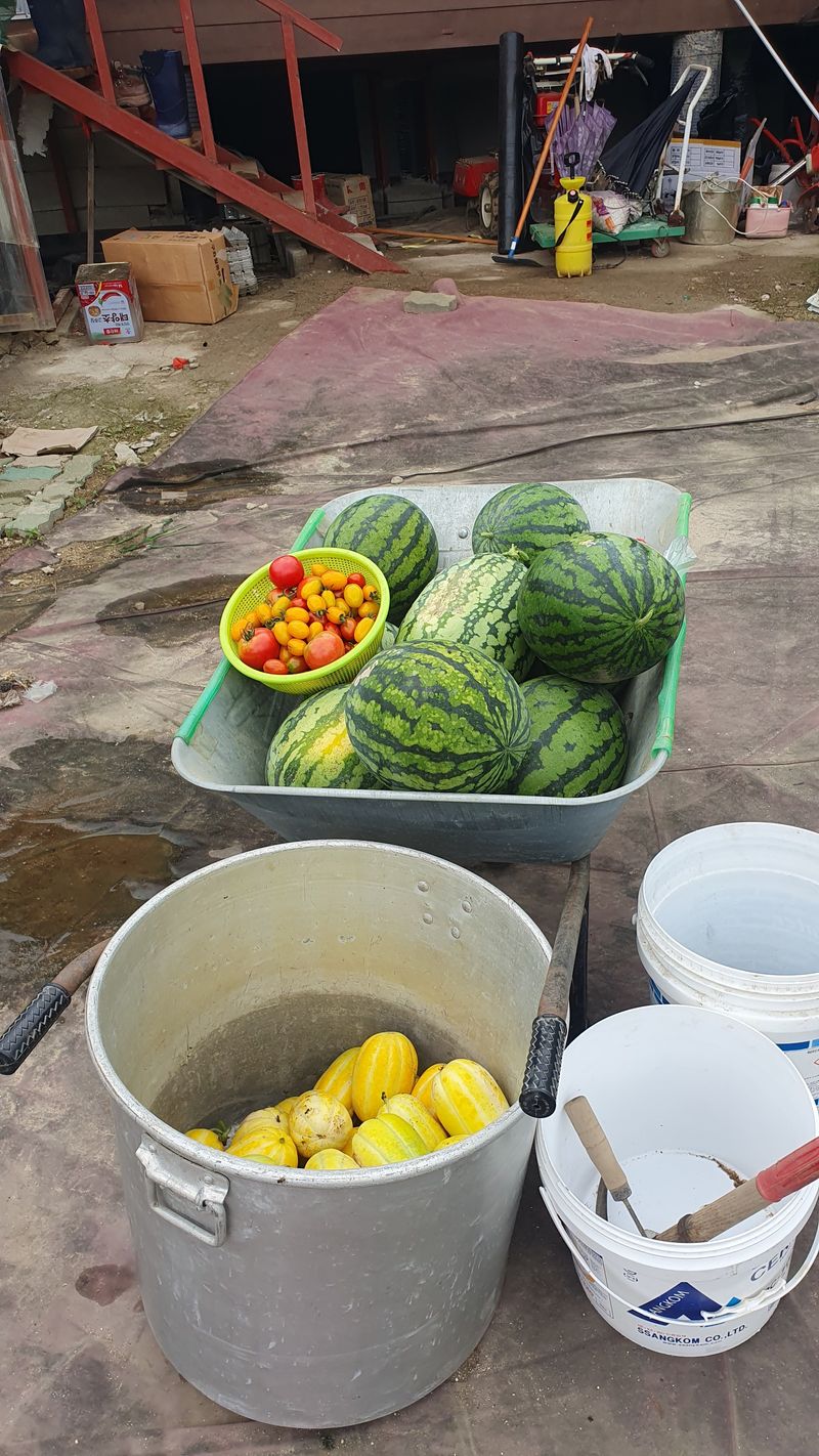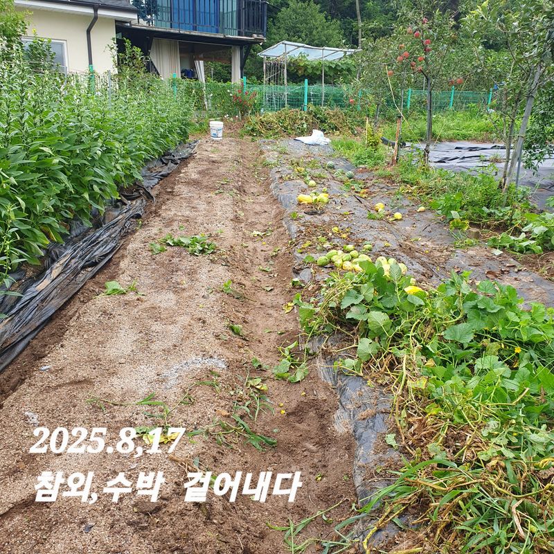 방울토마토 엄청달려서 내일은 다따와겠다 수박,참외도 제대로 익었다 풀도 많아 제초작업도한다