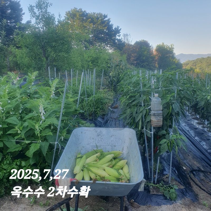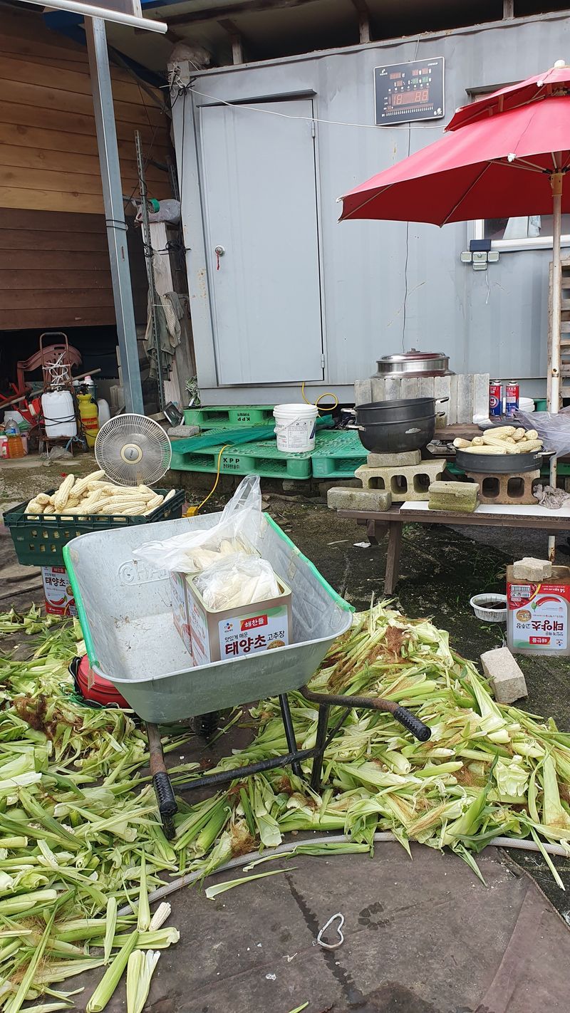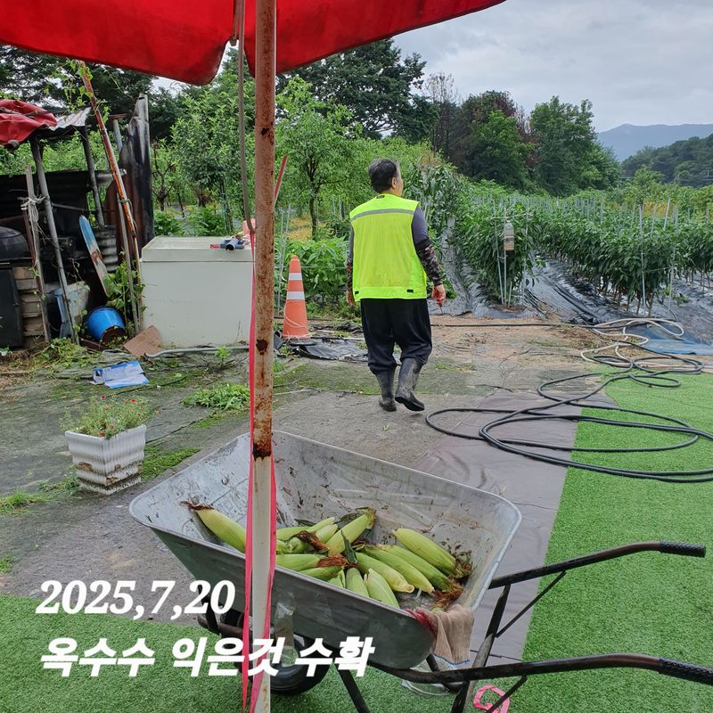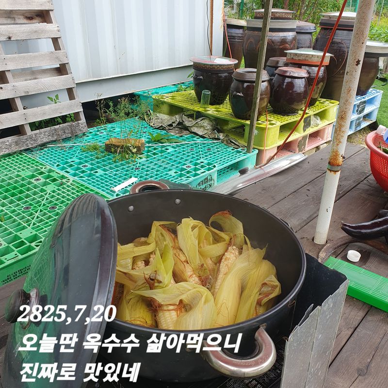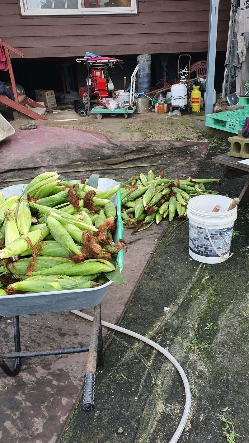 옥수수 수확해서 따고 껍질벗기고 삶고 새벽부터 오후까지 즐겁기도하지만 힘들어요