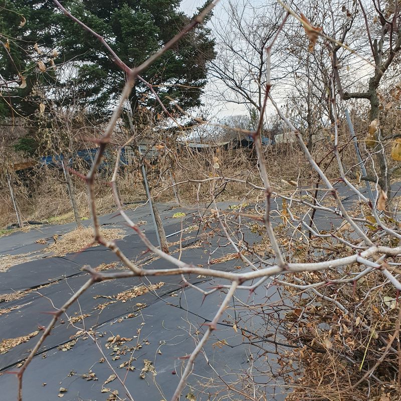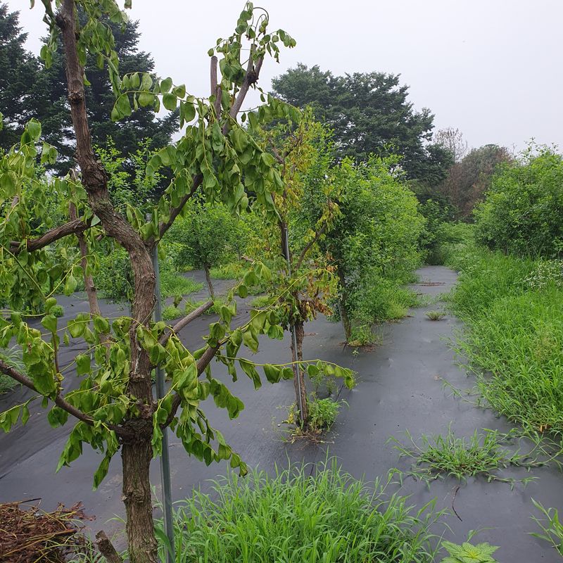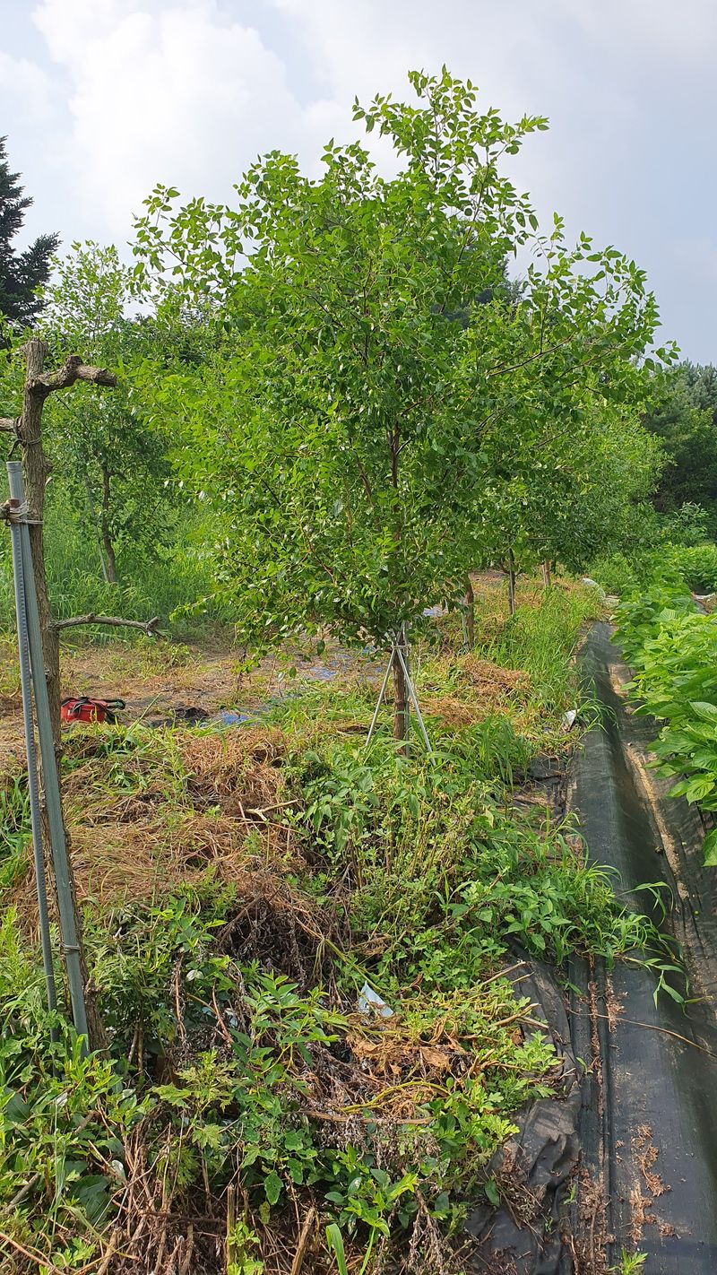 지난주 바람에 가지가 찟기고 쓰러지고 묶어주고 세우고 큰피해는 없었음