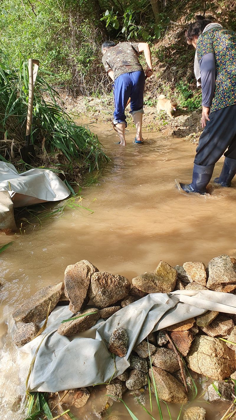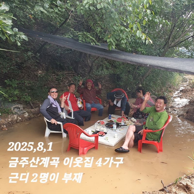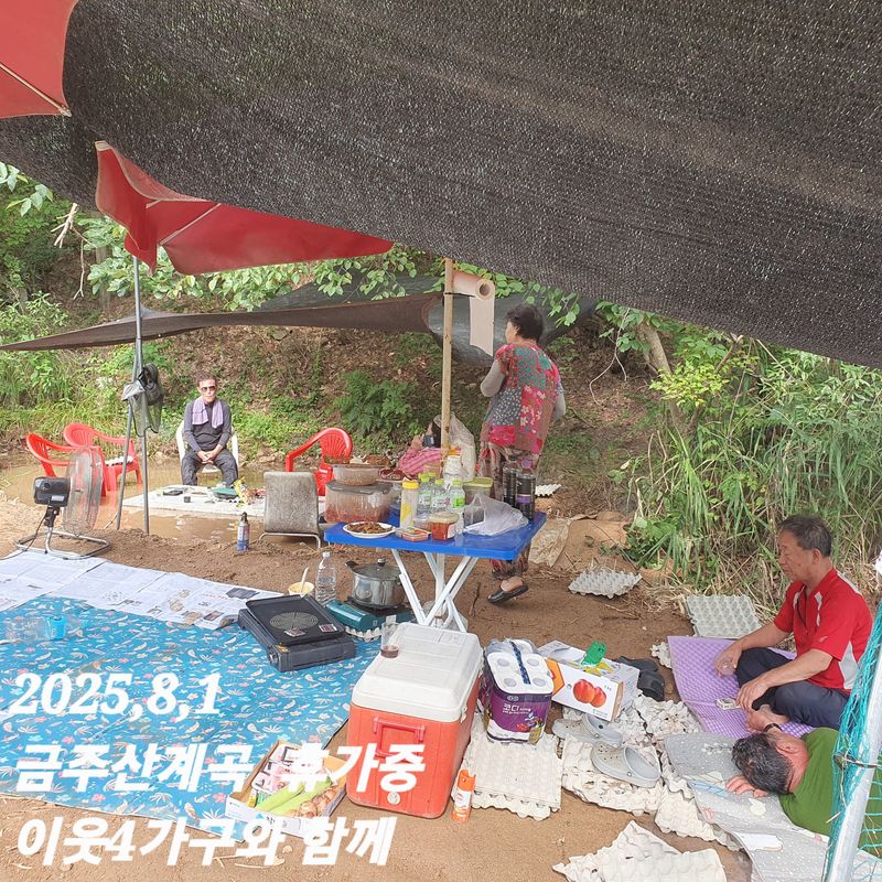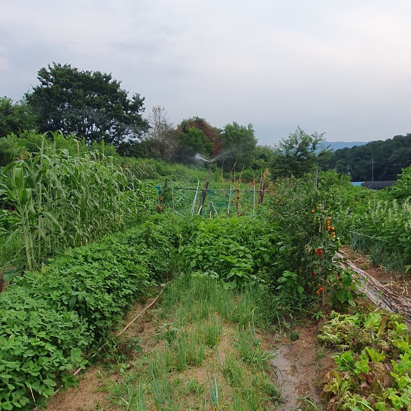 오늘부터 휴가 불과 100미터 계곡물이 흐르다 그래도 고추농사는 농사 물주고 오후에 스프링쿨러 설치
