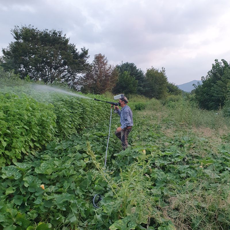 계속된 비가 그치니 탄저 병충해 방제 약분무하다 참외 수박 옥수수 수확하다